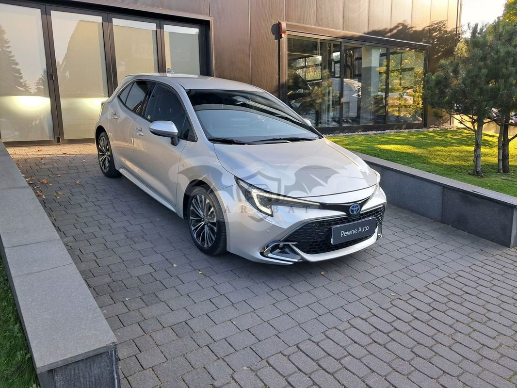 Srebrny Toyota Corolla Seria E21 1.8 Hybrid Style 2023 roku | Hybrydowy