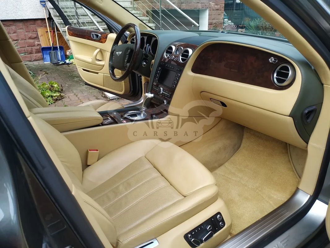 BENTLEY Continental Flying Spur z 2007r. Z silnikiem W12 o pojemności 5998cm3 i mocy 412kW. Wersja Europejska. Wyprodukowany na rynek Szwajcarski, pierwsza rejestracja 12.11.2007r. VIN: SCBBE53W97C048776 (zdjęcie numeru VIN w ogłoszeniu). Kolor lakieru: szaro-oliwkowy, skóry jasne. Wersja 5 osobowa. Za podłokietnikiem w tylnej kanapie zamontowana lodówka. W podsufitce dla pasażerów są dwa monitory do TV/DVD. Masaże w fotelach przednich i tylnych. Fotele przód/tył podgrzewane i wentylowane AC. Serwisowany w ASO, ostatni przegląd w 2023roku przy przebiegu 137tyś km. Napęd na 4 koła. Opony Continental z 2023r. Umowa kupna-sprzedaży. Zapraszam do oglądania. Więcej zdjęć mogę przesłać na maila, dodatkowe informacje udzielę telefonicznie