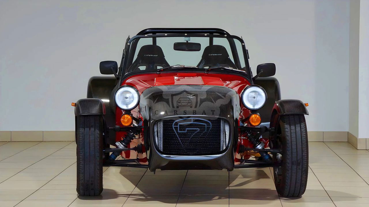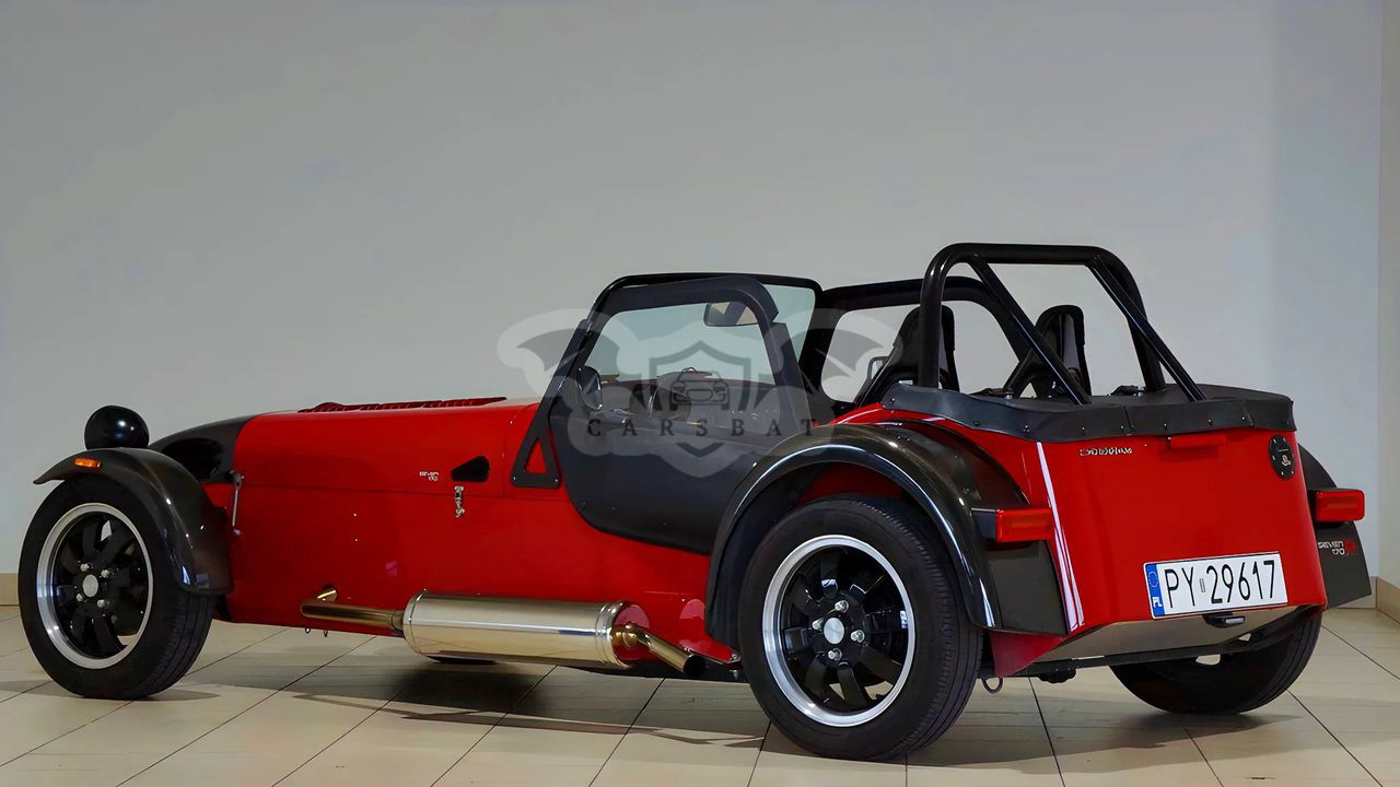 Caterham Seven S3 2023r 650ccm 85KM(63kW) Caterham 170 r - wersja 170, - pakiet R, - kolor Exoced Red, - znak 7 na atrapie Exoced Red, - ogrzewanie - obniżona podłoga, - wzmocniona pompa hamulcowa - czarna pokrywa wlewu paliwa - dach z szybą przednią - pokrowiec na dach - podłokietniki - błotniki przód i tył z włókna węglowego - „nos” z włókna węglowego - kieszeń na ścianie tylnej - tapicerowana tylna ściana R Pack zawiera: • 5 Biegową skrzynię • Sport pakiet zawieszenia • 14” Czarna obręcze aluminiowe Juno z polerowanym rantem, opony Avon ZT7 • Limited slip differential • „Carbon” - deska rozdzielcza • wyścigowe siedzenia* • Momo kierownica • 4 punktowe pasy bezpieczeństwa* • “Black pack” • Dedykowany kluczyk, dźwignia zmiany biegów i liczniki z logo • LED lampy tylne • Shift control LED • Polerowany wydech PRZED PRZYJAZDEM PROSIMY O KONTAKT TELEFONICZNY W CELU POTWIERDZENIA DOSTĘPNOŚCI. KONTAKT: