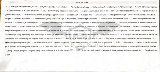 Sprzedam: Nissan Juke 1,6 N-Conecta Xtronic, z 2019 roku. Automatyczna skrzynia biegów,bogate wyposażenie- jak na zdjęciu. Dodatkowo ogrzewane siedzenia oraz czujnik ruchu z przodu. Mały przebieg 47tys.km, kupowany w Polsce od dilera Nissan w Warszawie. Jeden wlasciciel, Samochód co roku serwisowany, ostatnio w styczniu 2025. Garażowany, szary metalic z pomarańczowymi lusterkami bocznymi, bard zo przydatny przy szukaniu samochodu na parkingu