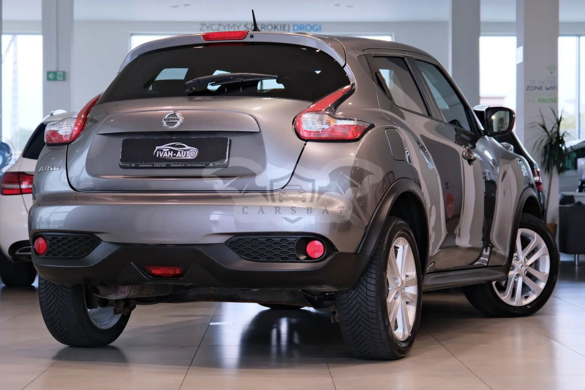 Szary Nissan Juke I 1.2 DIG-T Acenta 2017 roku | Benzyna