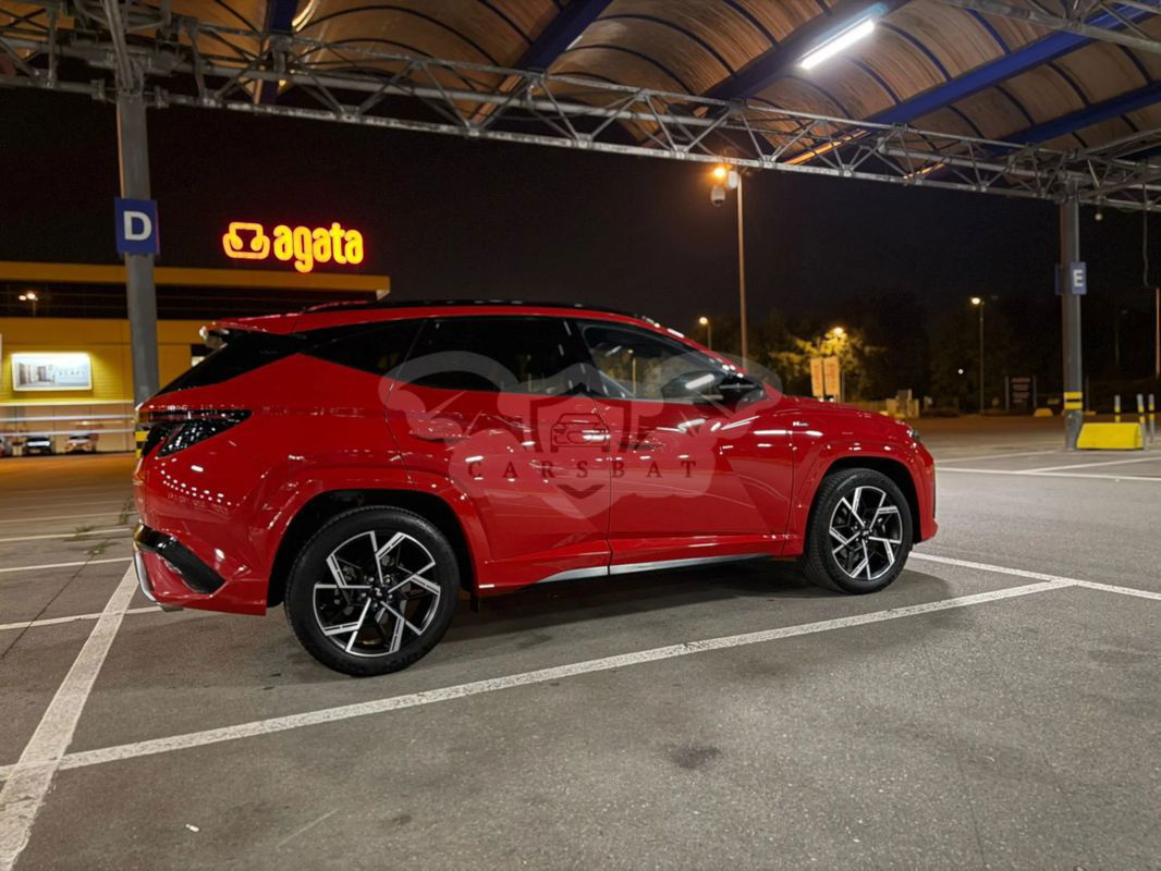 Czerwony Hyundai Tucson IV 1.6 T-GDi 48V-Hybrid 4WD DCT N Line 2024 roku | Benzyna