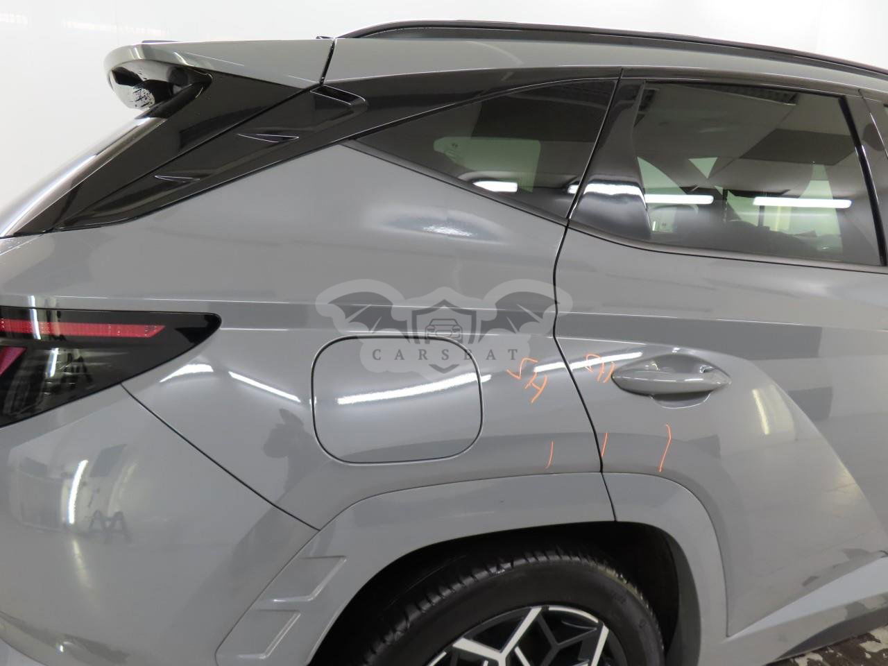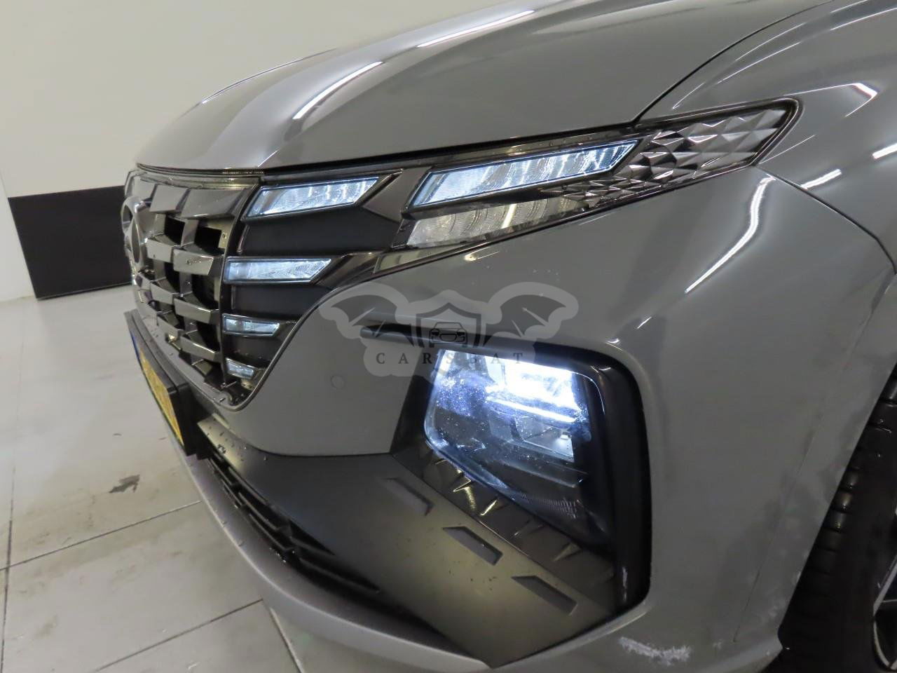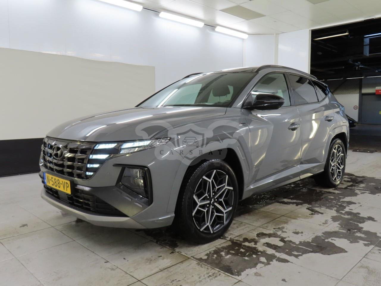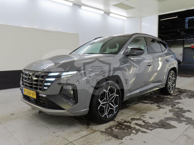 Szary Hyundai Tucson 1.6 T-GDI N Line 2022 roku | Hybrydowy