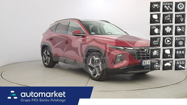Czerwony Hyundai Tucson IV 2022 roku | Hybrydowy