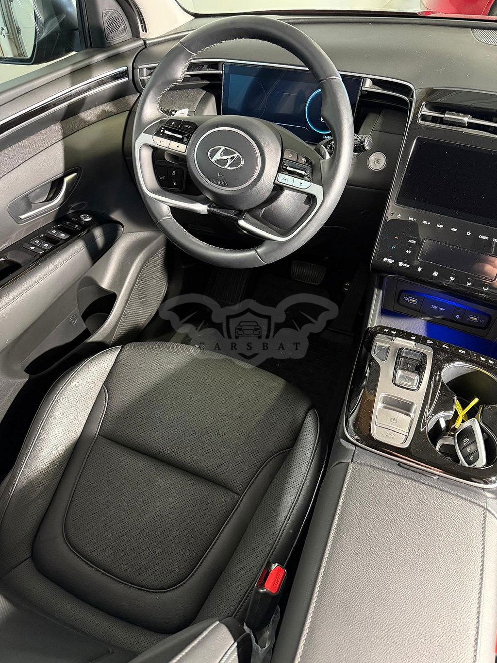 Czerwony Hyundai Tucson 2023 roku | Hybrydowy