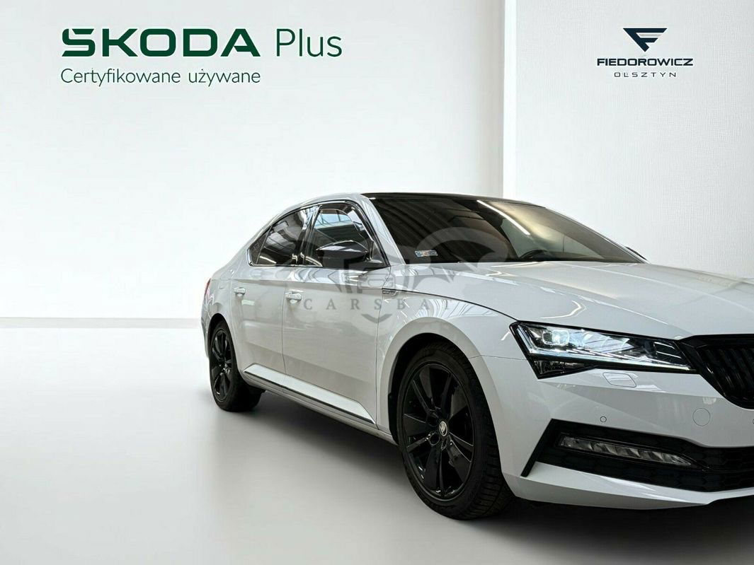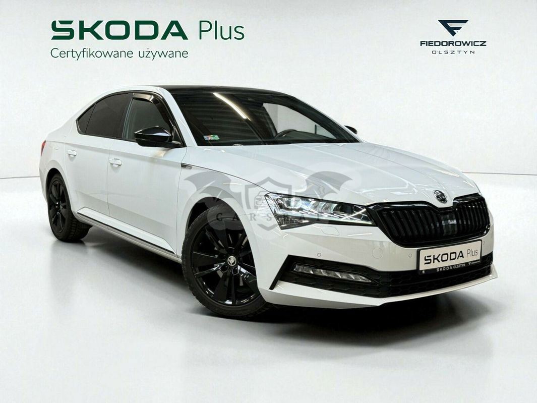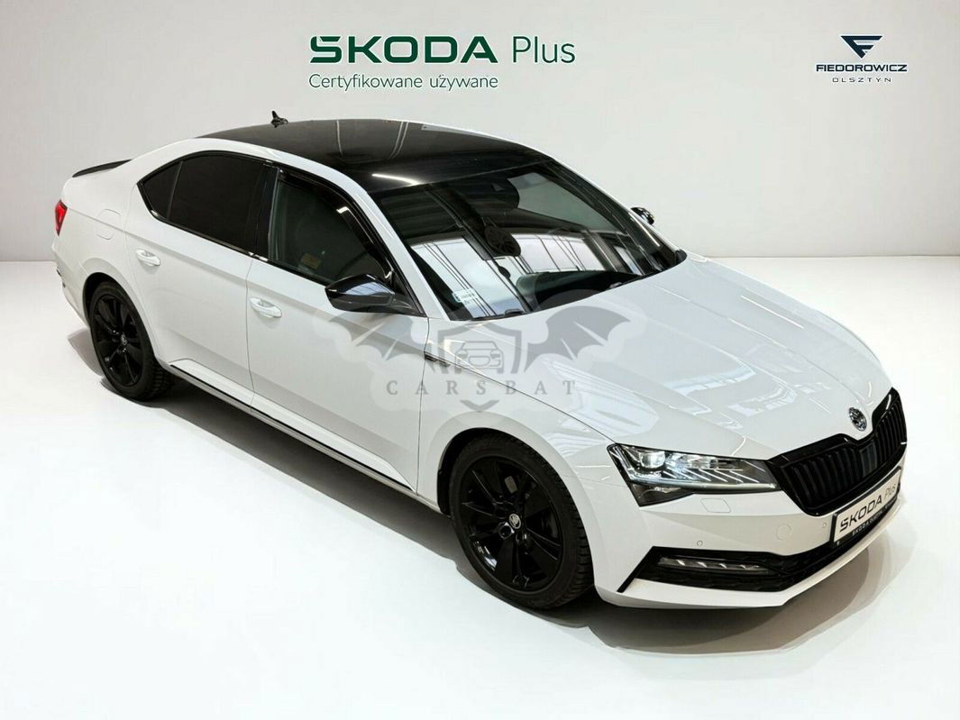 Biały Skoda Superb III 2.0 TSI Sportline DSG 2021 roku | Benzyna