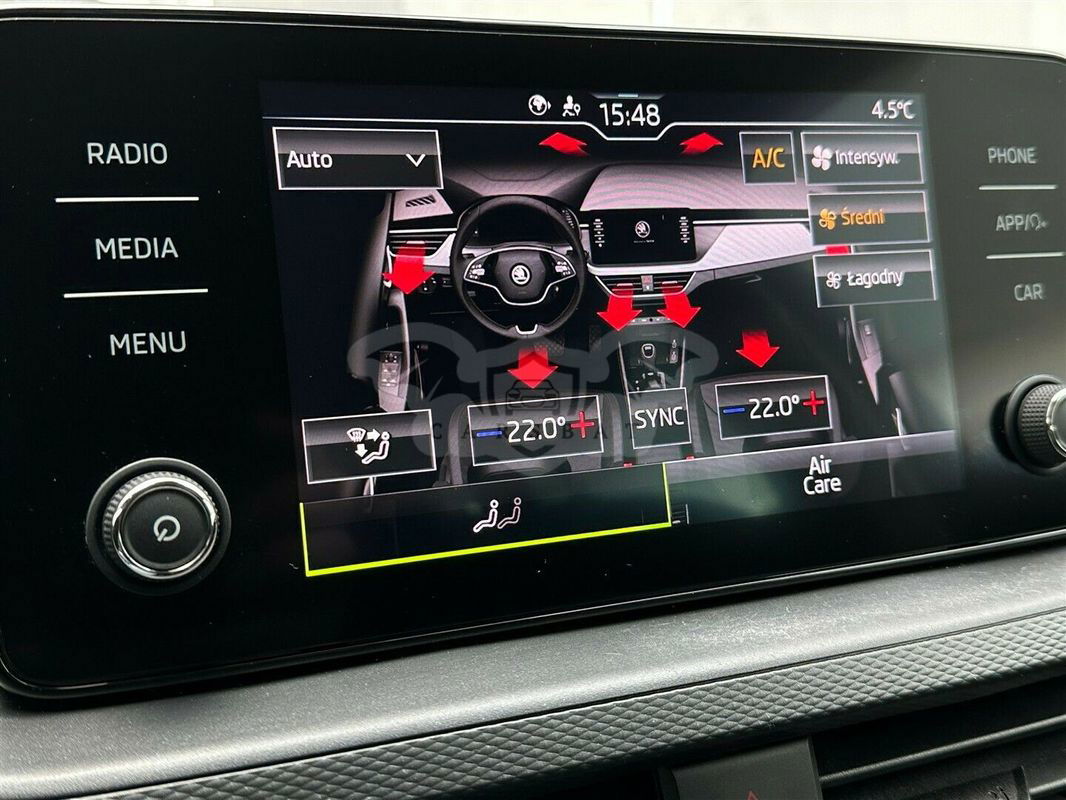 Samochód sprzedawany przez autoryzowanego dealera SKODA CARSED. Prezentowany egzemplarz został szczegółowo sprawdzony poprzez 117 punktów przez serwis SKODA CARSED Miejsce ekspozycji pojazdu – Salon Skoda – ul. Warszawska 84, Stojadła Skoda Scala Silnik: 1.0TSI 110KM Skrzynia biegów: manualna Pojazd zakupiony oraz serwisowany w polskim salonie. Numer rejestracyjny: WD2825S Data 1 rejestracji: 2021-12-07 VIN: TMBER6NW3N3032118 Samochód bezwypadkowy Rodzaj dokumentu sprzedaży- faktura VAT23% Wyposażenie dodatkowe: ● Pakiet Comfort dla Ambition, ● Pakiet Tech dla Ambition, ● Kamera cofania, ● Reflektory LED BASIC z przodu, ● Tylne światła LED BASIC, ● Hill hold control - system wspomagania r uszania pod wzniesienia, ● Elektrycznie sterowane, podgrzewane lusterka boczne, ● SMARTLINK, ● FRONT ASSIST - kontrola odstępu z funkcją awaryjnego hamowania, ● ESP system stabilizacji toru jazdy, ● Podgrzewane spryskiwacze przedniej szyby, ● Blokada przeciwuruchomieniowa (immobiliser), ● Czujniki parkowania z tyłu, ● Skórzana kierownica wielofunkcyjna, ● 2 gniazda USB-C z przodu, ● Elektrycznie sterowane szyby przednie i tylne, ● Kompyter pokładowy MAXI DOT, ● Rozszerzone i proaktywne środki ochrony pieszych, ● Światła do jazdy dziennej z funkcją Coming/Leaving Home, ● Tempomat z ogranicznikiem prędkości, ● CLIMATRONIC - klimatyzacja automatyczna dwustrefowa, ● Podgrzewane fotele z przodu, ● Lusterko wsteczne automatycznie przyciemniane, ● DRIVER ALERT - funkcja wykrywania zmęczenia kierowcy, ● Przednie reflektory przeciwmgłowe, ● Obręcze kół ze stopów lekkich Alaris 16", ● Radio Bolero (ekran 8", dwa gniazda USB-C), ● Kontrola ciśnienia w oponach, ● System alarmowy eCall+, ● Czołowe i boczne poduszki bezpieczeństwa z przodu, kurtyny powietrzne, ● System Start-Stop z funkcją rekuperacji, ● LANE ASSIST, ● SUNSET - przyciemniane tylne szyby boczne i szyba pokrywy bagażnika, ● DAB - funkcja odbioru programów radiowych w formie cyfrowej, ● Bluetooth, ● Uchwyty ISOFIX na zewnętrznych miejscach z tyłu oraz na fotelu pasażera z przodu. Nasi doradcy: Jakub Szeląg tel. Konrad Wosk tel. Godziny otwarcia: poniedziałek - piątek, godz. 8:00 - 18:00 sobota, godz. 9:00 - 14:00 Ogłoszenie ma charakter informacyjny i stanowi zaproszenie do zawarcia umowy (art. 71 Kodeksu cywilnego); nie stanowi natomiast oferty handlowej w rozumieniu art. 66 § 1 Kodeksu cywilnego. W celu sprawdzenia zgodności oferty oraz uzyskania wszelkich informacji prosimy kontaktować się z handlowcem d.s. samochodów używanych.
