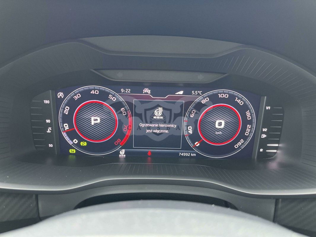 _ Wyposażenie: • VIRTUAL COCKPIT - cyfrowy zestaw wskaźników • Wielofunkcyjna sportowa, podgrzewana, skórzana kierownica • Łopatki zmiany biegów • Tapicerka w wersji MIX • Reflektory FULL LED • Doświetlanie zakrętów • Automatyczne światła do jazdy dziennej LED • Nagłośnienie CANTON • Czujniki parkowania PRZÓD + TYŁ z wizualizacją • Kamera cofania • Aktywny tempomat – Utrzymywanie odległości od poprzedzającego auta • FRONT ASSIST –Aktywne monitorowanie odległości z awaryjnym hamowaniem • DRIVER ASSIST – System rozpoznawania zmęczenie kierowcy • Elektryczna klapa bagażnika • Zmienne tryby jazdy • Elektrycznie ustawiany fotel kierowcy z pamięcią ustawień • Podgrzewane fotele przednie • SMARTLINK – zrzut ekranu telefonu na ekran w samochodzie • Dwustrefowa klimatyzacja automatyczna • Elektryczne podgrzewane, regulowane i składane lusterka • KEYLESS-GO – bezkluczykowe uruchamianie samochodu • Elektrochromatyczne lusterko wsteczne oraz boczne • Czujnik zmierzchu • Czujnik deszczu • Czujniki ciśnienia powietrza w oponach • Oświetlenie AMBIENTE • Zestaw głośnomówiący • Bluetooth • USB • ISOFIX – system montażu fotelików na tylnym siedzeniu • Klimatyzowany schowek • Alufelgi 19 calowe • Gniazdo 12V • Podłokietnik MOŻLIWOŚC TRANSPORTU AUTA NA TERENIE POLSKI !