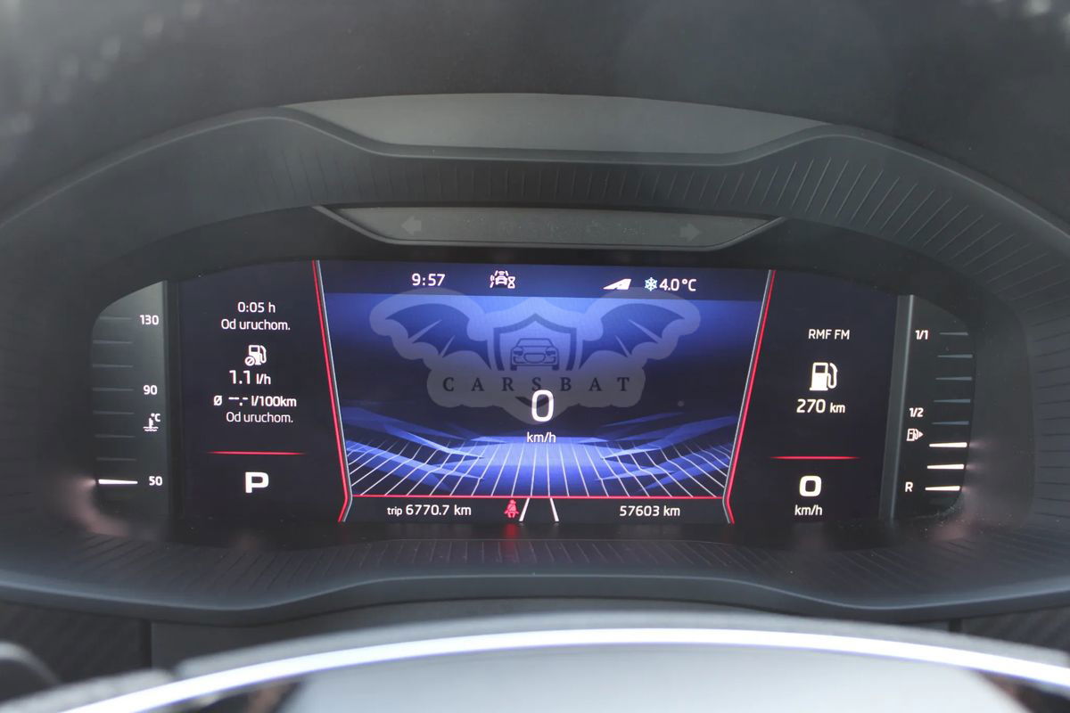 WYPOSAŻENIE STANDARDOWE: • 8 głośników • ABS - system zapobiegający blokowaniu się kół podczas hamowania • ASR - system optymalizacji przyczepności podczas przyśpieszania • Bluetooth (zestaw głośnomówiący) • Czujnik odległości przy parkowaniu - przód/tył z Manoeuvre Assist • DAB + • DRIVER ALERT - funkcja wykrywania zmęczenia kierowcy • DRIVING MODE SELECT - wybór profilu jazdy • DSR - system podpowiedzi ruchu kierownicą • Dekor Carbon na desce rozdzielczej • Dojazdowe koło zapasowe • Dywaniki materiałowe • EDS - elektroniczna blokada mechanizmu różnicowego • ESC - system stabilizacji toru jazdy • El. podnoszenie szyb - przód i tył • FRONT ASSIST – kontrola odstępu z funkcją awaryjnego hamowania • Felgi aluminiowe 19 TRIGLAV, antracytowe z ogumieniem 235/50 • Fotel kierowcy regulowany elektrycznie z funkcją pamięci • Fotele przednie z funkcją podgrzewania • Fotele przednie z manualną regulacją podparcia lędźwiowego • Fotele sportowe ze zintegrowanymi zagłówkami z elementami Suedia • Funkcja Start-Stop i odzyskiwania energii • Gniazdo 12V w konsoli środkowej, w tylnej części podłokietnika oraz w bagażniku • Gwarancja 3 lata z limitem 60 000 km (z czego 2 pierwsze lata bez limitu) • HBA - hydrauliczny system wspomagania awaryjnego hamowania • Immobilizer • KESSY FULL – bezkluczykowy system obsługi samochodu • Kamera cofania • Kierownica sportowa wielof. podgrzewana 3-ramienna skórzana ze zmianą biegów (radio, telefon) • Klimatyzacja automatyczna Climatronic, 2-strefowa • LIGHT ASSIST (Coming Home, Leaving Home, Tunnel Light) z czujnikiem deszczu i zmierzchu • Lakier specjalny Szary Steel • Lampy przednie Full LED Matrix • Lampy tylne FULL LED z dynamicznymi kierunkowskazami • Lusterka boczne elektryczne, podgrzewane, składane, automatycznie ściemniające się lusterko kierowcy • Lusterka boczne w kolorze czarnym • Lusterko wsteczne przyciemniające się automatycznie + czujnik deszczu • MANOEUVRE ASSIST - funkcja automatycznego hamowania podczas manewru cofania • MKB – Multi Collision Brake • MSR - system optymalizacji przyczepności podczas hamowania silnikiem • Nakładki na pedały, stalowe, sportowe • Ogranicznik prędkości • Ozdobne nakładki na progi w drzwiach przednich • Pakiet wewnętrznego oświetlenia LED Ambiente • Parasol w schowku drzwi kierowcy • Pasy bezpieczeństwa 3-punktowe z napinaczami, przód • Pasy bezpieczeństwa 3-punktowe, tył • Pedestrian Monitor - system hamowania awaryjnego • Podgrzewane dysze spryskiwaczy przedniej szyby • Podsufitka w kolorze czarnym • Poduszka kolanowa kierowcy • Poduszki 6 sztuk (czołowe poduszki kierowcy i pasażera, boczne poduszki - przód, kurtyny powietrzne) • Podłokietnik dla pasażerów w drugim rzędzie siedzeń • Podłokietnik z przodu • RBS - osuszanie tarcz hamulcowych • Radio Bolero (Ekran dotykowy 8 cali, WLAN, SmartLink) • Relingi dachowe - czarne • SUNSET - Szyby boczne tylne oraz szyba tylna dodatkowo przyciemniane • Schowek na okulary • Schowek pod fotelem pasażera • Składane oparcia tylnej kanapy w drugim rzędzie siedzeń • Spryskiwacze lamp przednich • TPM - system kontroli ciśnienia w oponach • Tempomat z ogranicznikiem prędkości • Tylne trzecie światło hamowania • Tylne światło przeciwmgielne • Uchwyty ISOFIX do instalacji fotelika dziecięcego, tył z mocowaniem TopTether • Virtual Cocpit - Cyfrowy zestaw wskaźników • Wspomaganie układu kierowniczego • Wspomaganie układu kierowniczego - progresywne • Wyłącznik poduszki powietrznej pasażera • Zamek centralny z pilotem • Zestaw haczyków w bagażniku • Zestaw siatek w bagażniku • Światła przeciwmgielne, przód DZIAŁ SPRZEDAŻY SAMOCHODÓW UŻYWANYCH • Marcin Hartmann, telefon: • Juliusz Waleczko, telefon: Zapraszamy do kontaktu z naszymi handlowcami, którzy udzielą pełnej informacji na temat prezentowanego samochodu. Zapraszamy na obowiązkową jazdę próbną! Zaproponujemy optymalne dla Ciebie rozwiązania finansowe. Dobierzemy ich rodzaj dostosowany do Twoich potrzeb. W sytuacji, w której jesteś zainteresowany nabyciem nowszego auta, możesz oddać obecnie posiadany samochód w rozliczeniu. Informacja nie stanowi oferty w rozumieniu art. 66 Kodeksu Cywilnego. Podane dane mają charakter wyłącznie informacyjny. Pełna informacja dostępna jest u handlowca.