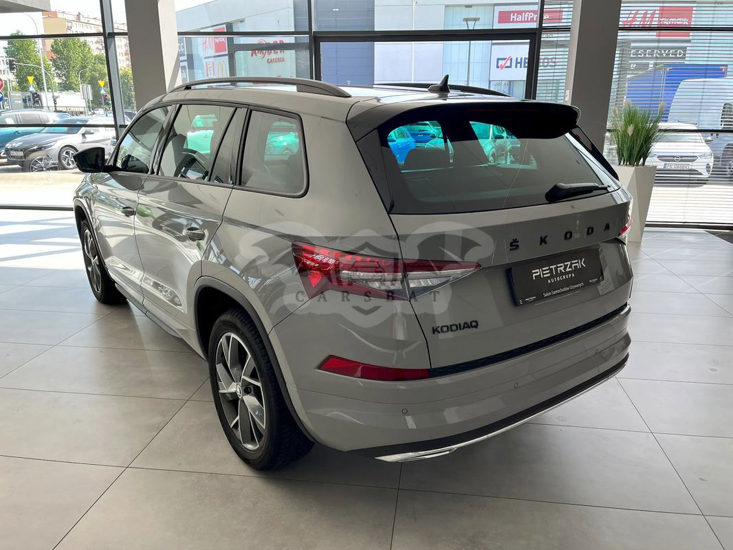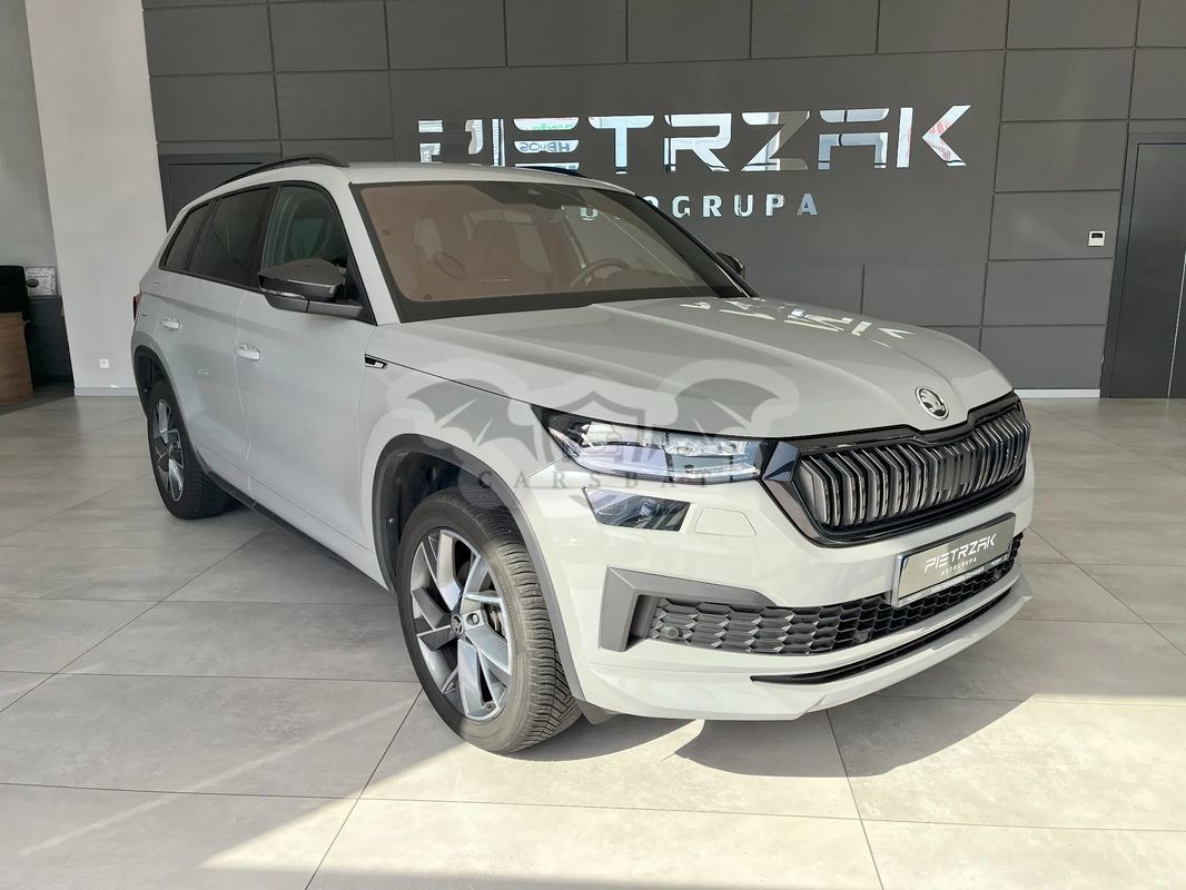 Samochód sprzedawany przez salon samochodów używanych AutoGrupa Pietrzak SKODA KODIAQ SPORTLINE 1.5 TSI DSG Wersja wyposażenia: SPORTLINE Rok produkcji: 2023 Przebieg: 22 504KM Data pierwszej rejestracji: 18/10/2023 Cena oferowanego pojazdu: 163 900PLN brutto Wyposażenie dodatkowe: • Elektrycznie sterowana pokrywa bagażnika (4E7) • Dźwiękochłonne szyby boczne z przodu wraz z SUNSET (VW5) • KESSY FULL bezkluczykowy system obsługi samochodu z alarmem i funkcją SAFE (PDD) • Funkcja SAFE uniemożliwia w zaryglowanym samochodzie otwieranie drzwi od wewnątrz oraz obsługę podnośników szyb nawet po jej zbiciu. Utrudnia to ewentualną próbę włamania do samochodu. • Elektrycznie zwalniany odchylany hak holowniczy z adapterem (PK0) • Elektrycznie ogrzewana przednia szyba (PKV) • Nawigacja Amundsen Wybrane wyposażenie standardowe: • Czujniki parkowania - przód i tył • Dojazdowe koło zapasowe • DRIVER ALERT – funkcja wykrywania zmęczenia kierowcy • DRIVING MODE SELECT - wybór profilu jazdy • ESP – system stabilizacji toru jazdy • FRONT ASSIST - kontrola odstępu z funkcją awaryjnego hamowania • Kamera cofania • KESSY FULL – bezkluczykowy system obsługi samochodu (bez funkcji SAFE) • Kurtyny powietrzne i boczne poduszki powietrzne z przodu • Mocowania ISOFIX do fotelika dziecięcego • Poduszka kolanowa po stronie kierowcy • Światła do jazdy dziennej z funkcją Coming/Leaving Home • Tempomat z ogranicznikiem prędkości • TPM - system kontroli ciśnienia w oponach • 8 głośników • Bluetooth • CLIMATRONIC - klimatyzacja automatyczna • DAB+ Funkcja odbioru programów radiowych w formie cyfrowej • Dywaniki tekstylne (dwa z przodu i dwa z tyłu) • Fotel kierowcy - funkcja pamięci, elektryczna regulacja, fotel pasażera - manualna regulacja wysokości • Fotele sportowe • Funkcja SMARTLINK • Oparcie kanapy składane, dzielone • Oświetlenie Ambiente • Podgrzewane fotele przednie • Podłokietnik centralny z przodu • Radio Bolero • Siatka w przestrzeni bagażowej • Skórzana, podgrzewana kierownica wielofunkcyjna, z łopatkami do zmiany przełożeń • Tapicerka Suedia • VIRTUAL COCKPIT - cyfrowy zestaw wskaźników • Elektrycznie sterowane i składane, podgrzewane lusterka boczne z funkcją pamięci • Obudowy lusterek zewnętrznych w kolorze czarnym • Reflektory Full LED Matrix • Relingi dachowe w kolorze czarnym • Spryskiwacze reflektorów • SUNSET - przyciemnione tylne szyby boczne i szyba pokrywy bagażnika • Światła na złe warunki, funkcja doświetlania zakrętów, światła autostradowe • Tylne światła FULL LED z dynamicznymi kierunkowskazam Wszelkich informacji udzielamy pod nr telefonów: ☎ ☎ ☎ ☎ ☎ ☎ ☎ ☎ ☎ ☎ ☎ ☎ ☎ ☎ ☎ ☎ ☎ ☎ Na samochód wystawiamy fakturę VAT 23%. Kupujący nie ponosi opłaty skarbowej. Możliwość odliczenia VAT przy zakupie na firmę. Oferujemy korzystne formy finansowania zakupu samochodu oraz ubezpieczenia komunikacyjne. Oferta jest ważna do czasu sprzedaży danego pojazdu. Niniejsze ogłoszenie jest wyłącznie informacją handlową i nie stanowi oferty w myśl art. 66, § 1. Kodeksu Cywilnego. Sprzedający nie odpowiada za ewentualne błędy lub nieaktualność ogłoszenia