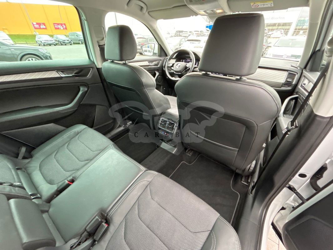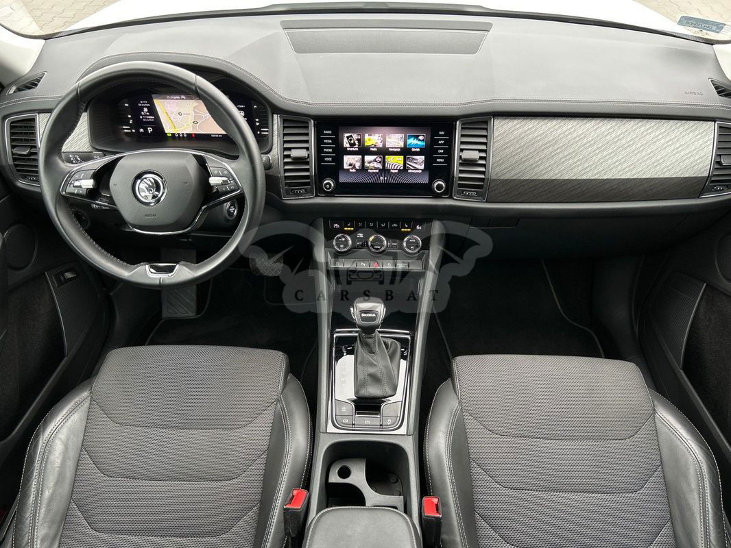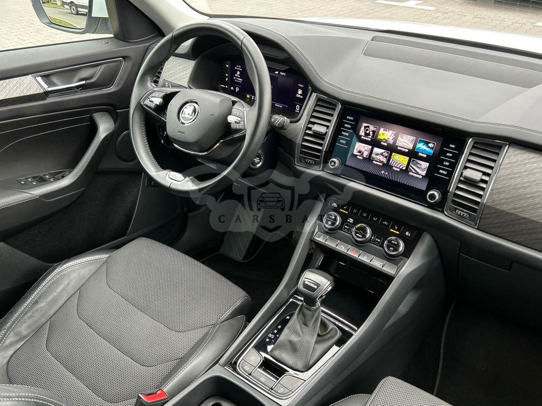 Model: Skoda Kodiaq Style + Pakiet Comfort + Wirtualna kabina + System nawigacji GPS + Tempomat aktywny ACC + Zróżnicowane tryby jazdy + Podgrzewane fotele przednie + Lane Assist- asystent pasa ruchu + Elektrycznie otwierane szyby boczne + Elektrycznie otwierana pokrywa bagażnika + System dostępu bezkluczykowego KESSY FULL + Funkcja bezprzewodowego ładowania smartfona + 3 strefowa klimatyzacja automatyczna Climatronic + Hak holowniczy zwalniany i odchylany elektrycznie + Kamera cofania z dynamicznymi liniami pomocniczymi + Elektrycznie regulowane i składane lusterka boczne z funkcją podgrzewania Wersja silnikowa: 2.0 TDI 150KM Skrzynia biegów: automatyczna 7-biegowa Napęd: przedni Kolor lakieru: biały „Moon”, metalik Kolor tapicerki: czarna, materiałowa