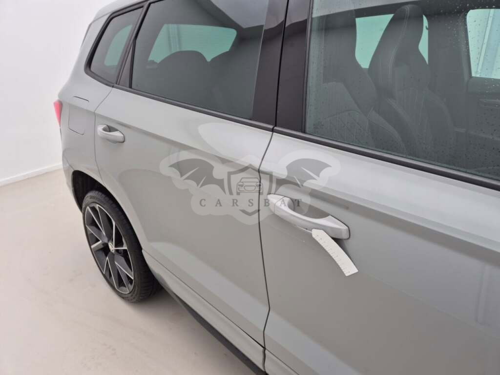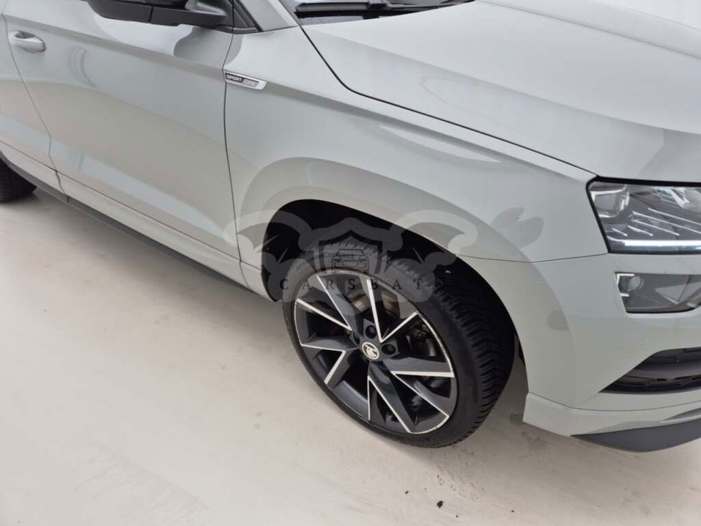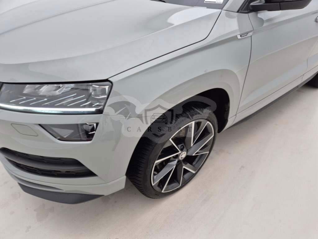 Szary Skoda Karoq 1.5 TSI Sportline Business 2022 roku | Benzyna