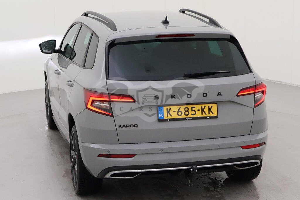 Szary Skoda Karoq 1.5 TSI Sportline Business 2021 roku | Benzyna