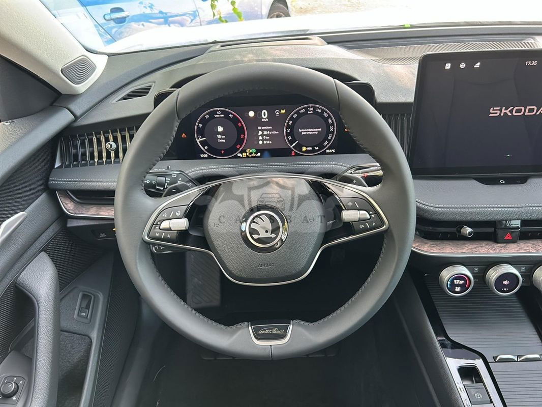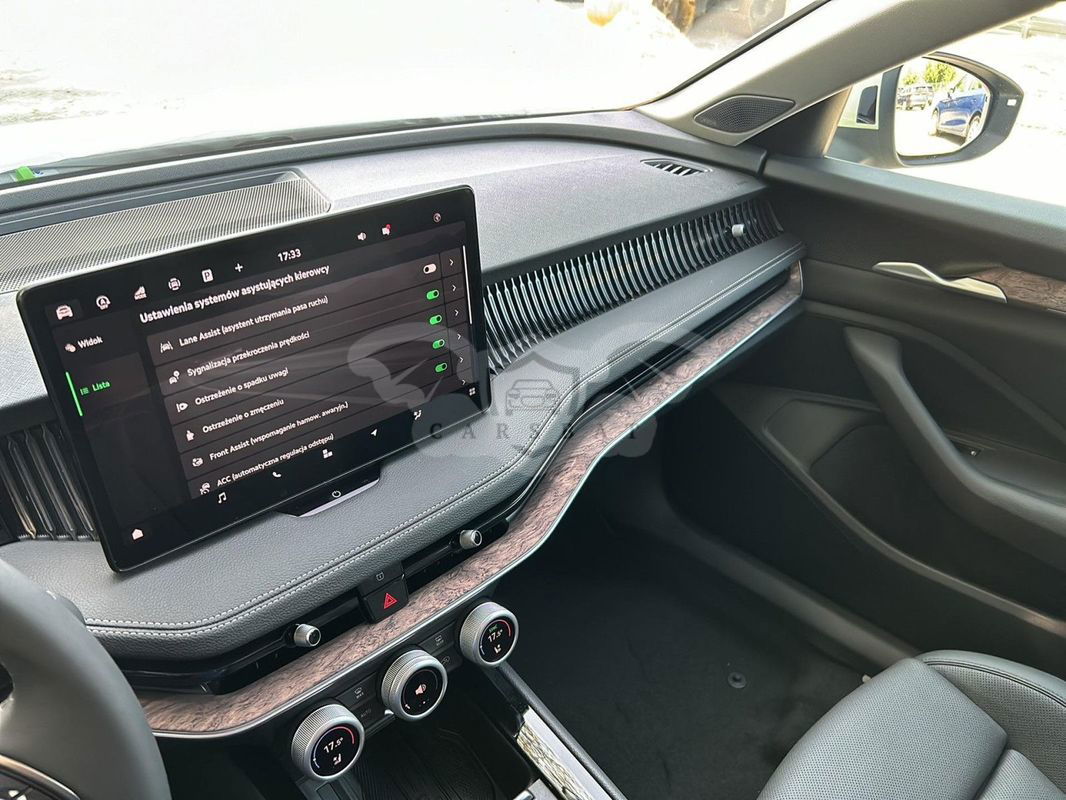 Wybrane elementy wyposażenia standardowego: 1. Crew Protect Assist - aktywna funkcja ochrony kierowcy i pasażera z przodu 2. Driver Alert - system wykrywający zmęczenie kierowcy 3. Front Cross Traffic Assist - funkcja wspierająca opuszczenie ze skrzyżowania 4. Traffic Sign Recognition - funkcja rozpoznawania znaków drogowych 5. Proactive Pedestrian Protection - proaktywna ochrona pieszych 6. Side Assist - funkcja monitorowania martwego pola z Rear Traffic Alert oraz Exit Warning 7. Front Assist - kontrola odstępu z funkcją awaryjnego hamowania 8. Tempomat 9. Lane Assist - asystent pasa ruchu 10. Turn Assist - asystent skrętu 11. Bezdotykowe otwieranie i zamykanie elektrycznie sterowanej pokrywy bagażnika 12. Kessy Full – bezkluczykowy system obsługi samochodu z alarmem (z funkcją Safe) i funkcją Kessy Advanced 13. Pakiet Climate - Podgrzewane zewnętrzne miejsca tylnej kanapy - Podgrzewana przednia szyba - Skórzana dwuramienna podgrzewana wielofunkcyjna kierownica z łopatkami dla DSG - Podgrzewane dysze spryskiwaczy przedniej szyby 14. Elektrycznie sterowane, podgrzewane, składane, automatycznie ściemniające się lusterko boczne po stronie kierowcy - z funkcją pamięci 15. HHC - Hill Hold Control 16. Bezprzewodowa szybka ładowarka indukcyjna z funkcją chłodzenia 17. Funkcja SmartLink - łączność bezprzewodowa dla urządzeń Apple CarPlay + Android Auto 18. Skórzana dwuramienna wielofunkcyjna kierownica z manetkami do zmiany biegów 19. USB typu C w centralnej konsoli oraz w Jumbo Box (45W) oraz 2x USB typu C z tyłu (45W) 20. Spryskiwacz kamery cofania Wyposażenie dodatkowe: