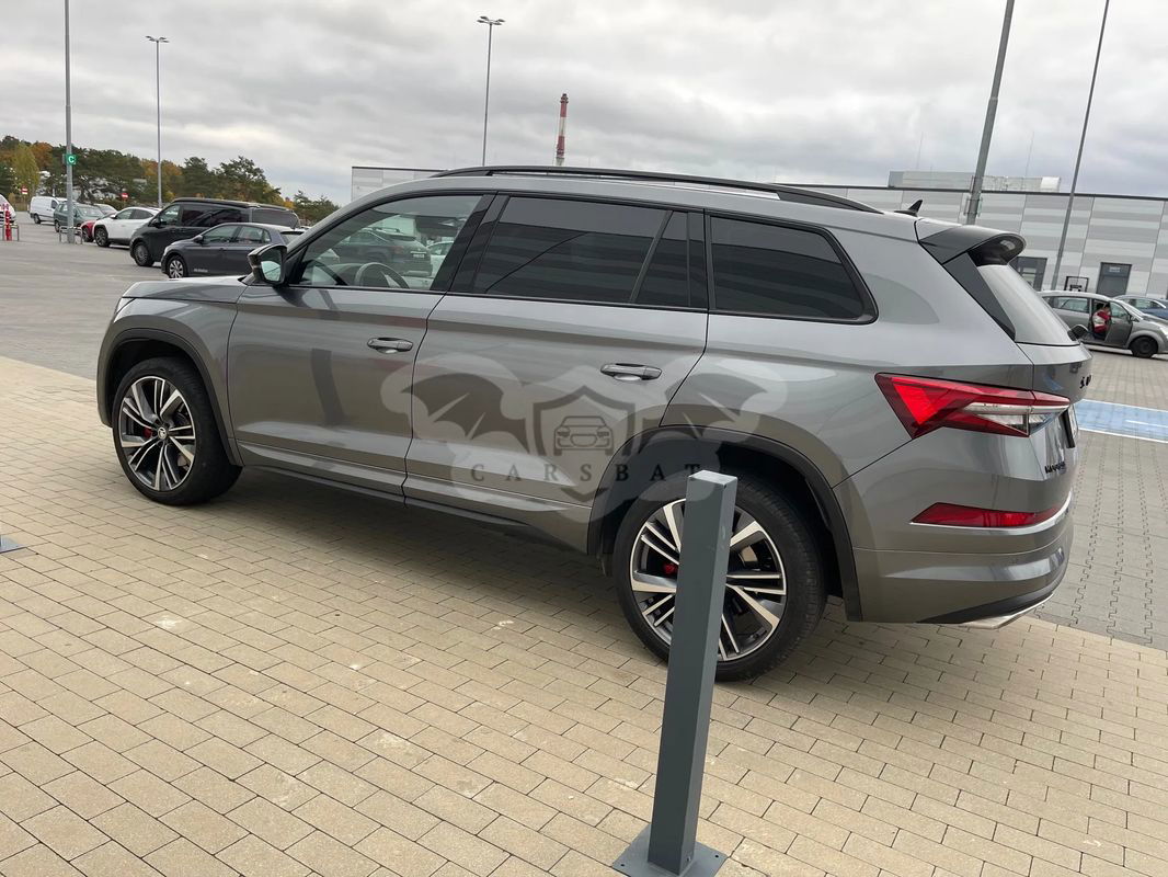 Skoda Kodiaq RS 2.O TSI 180 KW ( 245 KM ) Skrzynia Biegów 7-biegowa automatyczna DSG 4x4 Rok Produkcji 2022 Kolor Lakieru Szary Graphite Gwarancja i Pakiet Serwisowy do 2026 roku WYBRANE WYPOSAŻENIE STANDARDOWE Bluetooth Czołowe i boczne poduszki bezpieczeństwa z przodu, kurtyny powietrzne Czujniki parkowania z tyłu oraz z przodu z MANOEUVRE ASSIST DAB + (funkcja odbioru programów radiowych w formie cyfrowej) DCC - zawieszenie adaptacyjne (dla napędu 4x4 w połączeniu z funkcją OFF-ROAD) Dojazdowe koło zapasowe DRIVER ALERT - funkcja wykrywania zmęczenia kierowcy Dwustrefowa klimatyzacja automatyczna CLIMATRONIC Elektromechaniczny hamulec postojowy Elektrycznie sterowane, podgrzewane, składane lusterka boczne, automatycznie ściemniające się lusterko wewnętrzne Fotel kierowcy regulowany elektrycznie na odcinku lędźwiowym, fotel pasażera regulowany manualnie FRONT ASSIST – kontrola odstępu z funkcją awaryjnego hamowania Kamera cofania KESSY FULL - bez kluczykowy system obsługi samochodu Podłokietnik dla pasażerów w drugim rzędzie siedzeń Poduszka chroniąca kolana kierowcy Tempomat z ogranicznikiem prędkości Usługa Care connect - Zestaw siatek w bagażniku 8 głośników Dywaniki materiałowe (2 z przodu i 2 z tyłu) Elektrycznie sterowany fotel kierowcy z funkcją pamięci Pakiet wewnętrznego oświetlenia LED Ambiente Podgrzewane fotele przednie Sportowe siedzenia ze zintegrowanymi zagłówkami Dźwiękochłonne szyby boczne z przodu wraz z SUNSET Elektrycznie sterowana pokrywa bagażnika Relingi dachowe w kolorze czarnym WYPOSAŻENIE DODATKOWE I USŁUGI