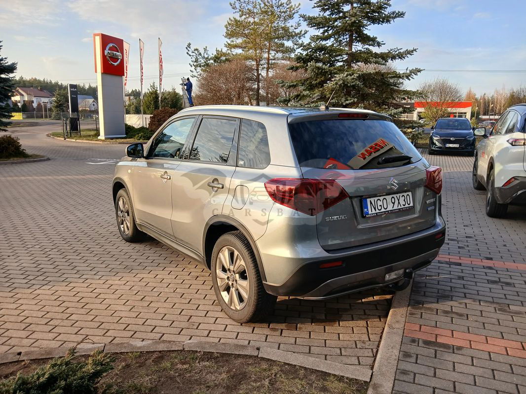 Oferta od Autoryzowanego Dealera Nissana i Suzuki Wasilewski i Syn Sp. z o.o.. Auto wyprodukowane w 2022 roku. Suzuki w kolorze szarym metalizowanym. Silnik benzynowy 1,4, o mocy 129KM. Pojazd z napędem na przednią oś 2WD, manualną skrzynią biegów, w bogatej wersji wyposażenia Premium. Zużycie paliwa – cykl mieszany 6,3 [l/100 km]. Suzuki dostępny jest od ręki. Sprzedaż w oparciu o fakturę VAT-marża (Kupujący zwolniony z podatku 2% PCC). Skontaktuj się z nami. Chętnie odpowiemy na wszystkie pytania. Specjalista ds. sprzedaży samochodów używanych Krzysztof Dożynko 723 - 444 - 141 Kierownik działu sprzedaży: Olga Puzio 724 - 661 - 666 Specjalista ds. sprzedaży samochodów: Izabela Danowska 724 - 888 - 883 Wyposażenie: Bezpieczeństwo: • Asystent awaryjnego hamowania, • Asystent niezamierzonej zmiany pasa ruchu, • Przednie, czołowe poduszki powietrzne (kierowcy i pasażera), • Przednie, boczne poduszki powietrzne, • Kurtynowe poduszki powietrzne, • Trzypunktowe pasy bezpieczeństwa, • Sygnalizator braku zapięcia pasów bezpieczeństwa kierowcy, • System ISOFIX, • Zabezpieczenie drzwi tylnych przed otwarciem przez dzieci, • Regulacja położenia kolumny kierownicy, • ESP, ABS, Immobilizer. Nadwozie: • Zderzaki w kolorze nadwozia, • Lusterka zewnętrzne w kolorze czarnym, • Lusterka zewnętrzne regulowane elektrycznie, podgrzewane, • Alufelgi 17'', • Drugi komplet opon (zimowych) widoczny na zdjęciach, • Przyciemniane szyby. Wnętrze: • Podgrzewana tylna szyba, • Podgrzewane przednie fotele, • Elektrycznie regulowane szyby boczne z przodu i z tyłu, • Klimatyzacja automatyczna, • Komputer pokładowy, • Kierownica pokryta skórą, • Tapicerka materiałowa, • Gniazdo 12V, Technologia: • Wspomaganie układu kierowniczego, • Centralny zamek sterowany pilotem, • Światła przeciwmgłowe, • Automatyczne światła przednie LED, • Światła do jazdy dziennej LED, • Czujnik zmierzchu, • Czujnik deszczu, • Stacja multimedialna z dotykowym ekranem, • Apple CarPlay, Android Auto, • Funkcje głosowe, • Kamera cofania, • Sterowanie systemem audio przyciskami na kierownicy, • Tempomat, • Hak, • Pakiet akcesoriów. Informacje dodatkowe: Wasilewski i Syn autoryzowany Dealer Nissan Suzuki, zaprasza do zapoznania się z ofertą samochodów używanych. Sprzedajemy wyłącznie sprawdzone samochody używane. Przyjmujemy samochody w rozliczeniu. Stan techniczny każdego samochodu weryfikujemy w naszym Autoryzowanym Serwisie Obsługi. Zapewniamy możliwość badania powłoki lakierniczej w obecności Klienta. Zapewniamy jazdę próbną. Oferujemy możliwość wykupienia dodatkowej gwarancji na rok lub dwa lata bez limitu kilometrów. Pomagamy uzyskać dogodne finansowanie zakupu pojazdu: kredyt lub leasing. Dysponujemy szeroką ofertą pakietowych dealerskich ubezpieczeń komunikacyjnych. Zapraszamy do naszego salonu w godzinach: Od Poniedziałku do Piątku: 8-17 Soboty : 8-14 Niniejsza oferta ma jedynie charakter informacyjny i nie stanowi oferty zawarcia umowy w rozumieniu przepisów kodeksu cywilnego.
