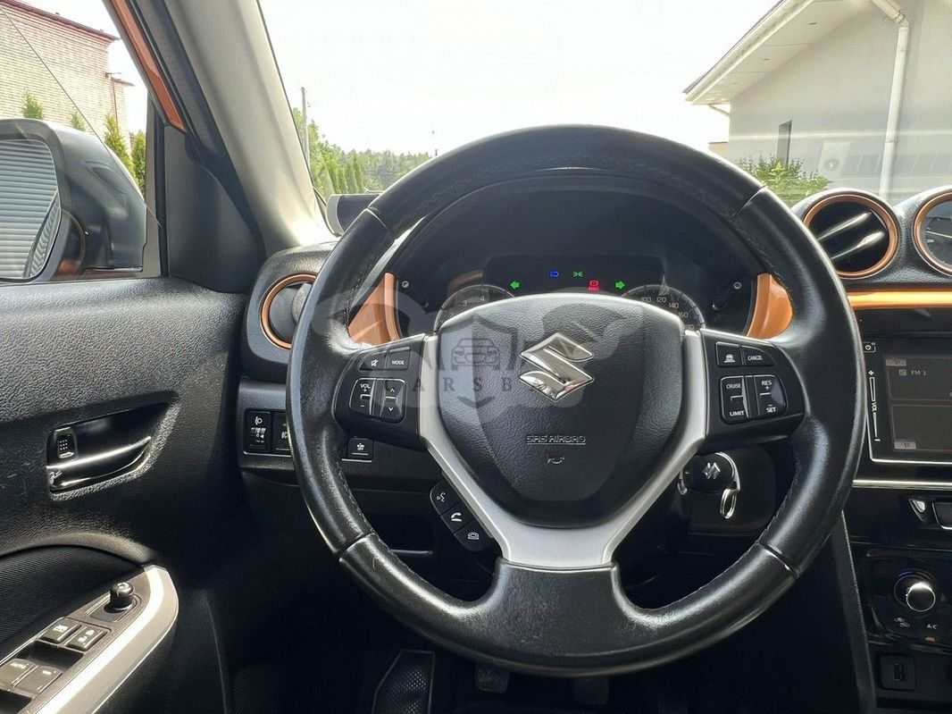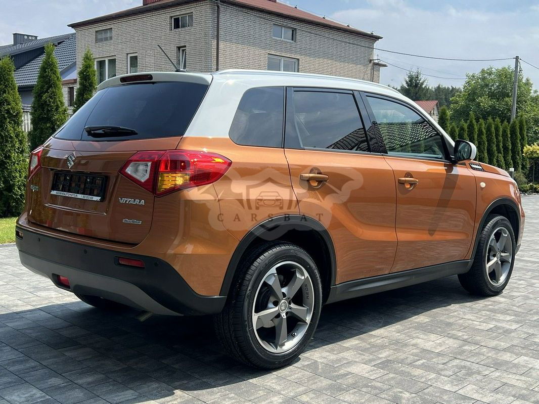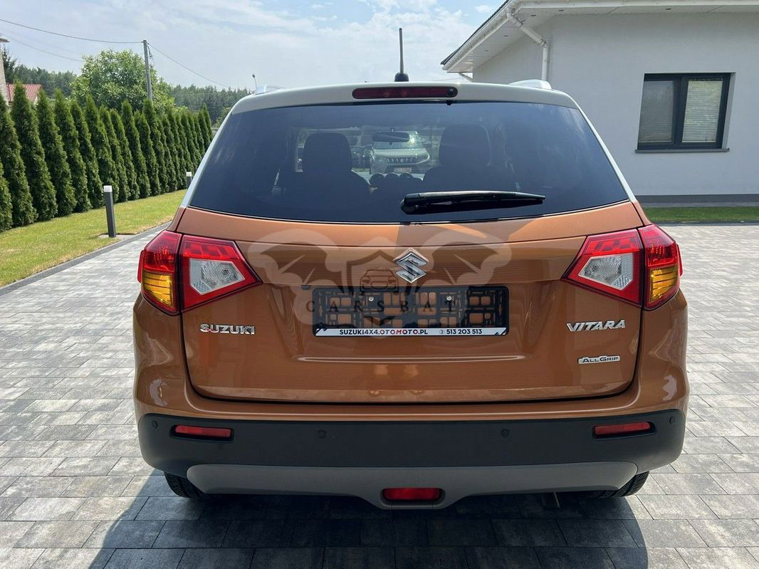 Firma Suzuki4x4 Używane z Gwarancją Tel: Nasza lokalizacja: ul. Kluczewska 79c 32-310 Chechło k/olkusza woj. małopolskie. Oferuje: Suzuki Vitara 1.6 z napędem 4x4 (ALLGRIP), zakupiona w polskim salonie. Samochód w pięknym zestawieniu kolorystycznym HORIZON ORANGE + SUPERIOR WHITE. Jeden właściciel. Bogato wyposażona, m.in.: wielofunkcyjna kierownica, tempomat, radar, kamera cofania, bluetooth, nawigacja, klimatronik, światła led do jazdy dziennej, podgrzewane fotele i lusterka, halogeny, 17' felgi aluminiowe, przyciemniane szyby, czujniki parkowania przód i tył. Perfekcyjny stan techniczny, wizualny i blacharski. Bezwypadkowy, cała w oryginalnym lakierze, wszystkie szyby fabryczne, wnętrze jak nowe, technicznie 100% ok, zero korozji. Dwa komplety kół lato-zima. Oryginalny przebieg tylko 80tyśkm potwierdzony dokumentami, dodatkowo potwierdzamy wpisem na fakturze. Regularnie serwisowana w ASO. Dwa fabryczne kluczyki + komplet książek. Wystawiam fakturę, kupujący zwolniony z opłaty skarbowej 2%. * Pisemna gwarancja techniczna, która obejmuje naprawy w warsztatach na terenie całej Polski. Cieszymy się, że zainteresowała Państwa nasza oferta. W razie jakichkolwiek pytań służymy pomocą i profesjonalnym doradztwem pod numerem telefonu . Specjalizujemy się w samochodach Suzuki z napędem 4x4. Wszystkie nasze samochody znajdziesz na stronie: suzuki4x4.otomoto.pl Niniejsze ogłoszenie jest wyłącznie informacją handlową i nie stanowi oferty w myśl art. 66§1 Kodeksu Cywilnego. Sprzedający nie odpowiada za ewentualne błędy lub nieaktualność ogłoszenia - Dodatkowe informacje: liczba miejsc: 5, kraj pochodzenia: Polska Numer oferty: AKL185VQ4