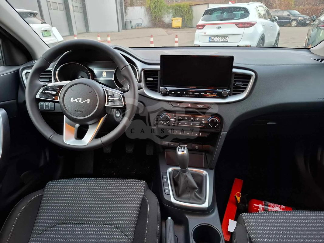 Zdalnie sterowany centralny zamek, składany kluczyk, alarm obwodowy, immobilizer Światła do jazdy dziennej wykonane w technologii LED w stylistyce kostek lodu Światła mijania oraz drogowe wykonane w technologii LED, kierunkowskazy LED Elektrycznie regulowane i podgrzewane lusterka zewnętrzne w kolorze nadwozia Regulacja wysokości fotela kierowcy Skórzane wykończenie kierownicy, drążek zmiany biegów pokryty skórą ekologiczną Klimatyzacja manualna Asystent utrzymania pasa ruchu LKA Asystent jazdy utrzymujący samochód pośrodku pasa ruchu LFA Tempomat z ogranicznikiem prędkości Kamera cofania z dynamicznymi liniami ułatwiającymi parkowanie Tylne czujniki parkowania Gniazdo USB-C do ładowania urządzeń przenośnych w konsoli środkowej z przodu oraz z tyłu dla pasażerów tylnych siedzeń System nawigacji satelitarnej z obsługą w języku polskim, 10.25” kolorowy ekran dotykowy LCD, 7-letni plan darmowej aktualizacji, tuner radia cyfrowego DAB, interfejs Apple CarPlay / Android Auto, zestaw usług cyfrowych Kia Connect Podłokietnik przedni ze schowkiem oraz tylny z uchwytami na kubki Pakiet Zimowy (WIN) zawiera: Podgrzewane fotele przednie z trójstopniową regulacją Podgrzewana kierownica Kieszenie w oparciach przednich siedzeń