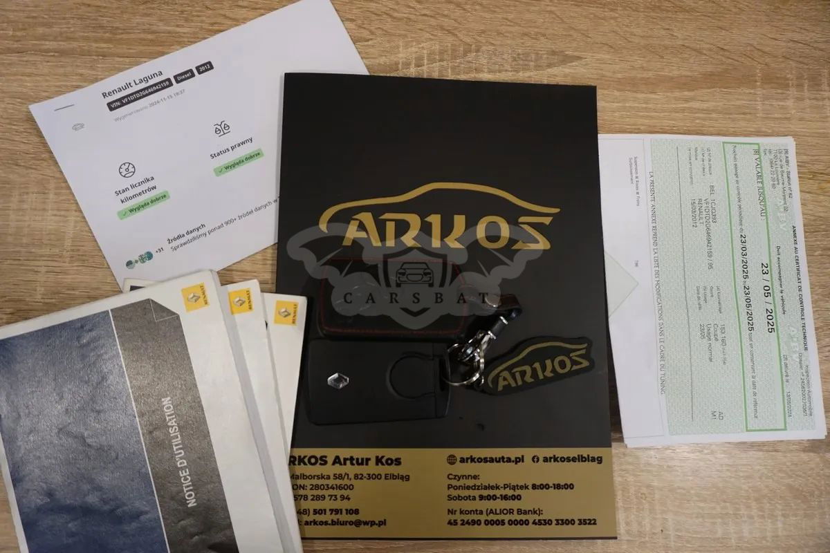 ARKOS NIE JEST KOMISEM JEST PRYWATNYM IMPORTEREM SAMOCHODÓW NIE PRZYJMUJĘ SAMOCHODÓW W ROZLICZENIU. KUPUJĄC SAMOCHÓD OD ARKOS-A OSZCZĘDZASZ CZAS I PIENIĄDZE,GDYŻ WSZYSTKIE FORMALNOŚCI I OPŁATY ZWIĄZANE Z REJESTRACJĄ POJAZDU W POLSCE SĄ PRZEZE MNIE WYKONANE, WYSOKOŚĆ OPŁAT JEST USTALANA INDYWIDUALNIE OD RODZAJU I CENY AUTA Wystawiam fakturę VAT marża na całą kwotę, kupujący zwolniony z podatku skarbowego 2% dodatkowa oszczędność 778zł. Auto zarejestrowane w Polsce, urząd celny-akcyza, badanie techniczne są już wykonane. Kwotę 2.000zł trzeba doliczyć do ceny samochodu. RENAULT LAGUNA COUPE 2.0 DCI 150 KM DATA PRODUKCJI/ REJESTRACJI: 15/03/2012 MOC SILNIKA: 150 KM PRZEBIEG: 156 169 km VIN: VF1DTD2G646942159 (Autostradowy) Pełna dokumentacja Przebiegu Gwarancja Pisemna BELGIJSKI PRZEGLĄD TECHNICZNY + DARMOWY CARVERTICAL NA MIEJSCU WYPOSAŻENIE: - ESP - ABS - ASR - ŚWIATŁA LED DO JAZDY DZIENNEJ LED ORAZ XENONY - SKÓRZANA TAPICERKA JAK NOWA - ELEKTRYCZNIE USTAWIANE FOTELE PRZEDNIE ORAZ PODGRZEWANE - KEYLESS GO- BEZKLUCZYKOWE OTWIERANIE ORAZ ODPALANIE AUTA - CZUJNIKI PARKOWANIA PRZÓD + TYŁ - DWUSTREFOWA KLIMATYZACJA AUTOMATYCZNA - NAWIGACJA - KAMERA COFANIA - MOŻLIWOŚĆ STREAMINGU MEDIÓW POPRZEZ BLUETOOTH - TEMPOMAT - KOMPUTER POKŁADOWY W JĘZYKU POLSKIM - SKÓRZANA KIEROWNICA - WIELOFUNKCYJNA KIEROWNICA - WSPOMAGANIE KIEROWNICY - PODUSZKI POWIETRZNE x 8 - IMMOBILIZER - CENTRALNY ZAMEK Z KLUCZYKA - ORYGINALNY AUTO ALARM - PODGRZEWANE LUSTERKA - ELEKTRYCZNE LUSTERKA - ELEKTRYCZNE SZYBY - ELEKTRYCZNA REGULACJA REFLEKTORÓW - REGULACJA KIEROWNICY W DWÓCH PŁASZCZYZNACH - ALUFELGI 18 RENAULT - OPONY LETNIE 225/45/18 - TRZECIE ŚWIATŁO STOP LED - SENSOR DESZCZU - SENSOR ZMIERZCHU - ISOFIX BŁYSKAWICZNY MONTAŻ FOTELIKÓW DLA DZIECI ARKOS OFERUJE RÓWNIEŻ WYMIANĘ CZĘŚCI EKSPLOATACYJNYCH PO ZAKUPIE SAMOCHODU TAKICH JAK: FILTRY, OLEJE, ROZRZĄD Zapraszam Poniedziałek - Piątek od 8:00 do 18:00 Sobota od 9:00 do 17:00 Niedziela - po wcześniejszym umówieniu spotkania Przed przyjazdem proszę o kontakt w celu umówienia spotkania. Możliwość zakupu na Kredyt / Leasing Specjalista ds. finansowania - Jolanta Małek Możliwość dokupienia Gwarancji CAR-GWARANT: przez 12 miesięcy obejmuje:- wszystkie usterki techniczne (związane z gwarancją) wynikłe po nabyciu pojazdu. Koszt- 1200zł. Ważne dla Państwa jest to, że jeżeli zajdzie taka uzasadniona potrzeba, to możecie wielokrotnie usuwać awarie podzespołów w okresie wskazanym w Certyfikacie. - jednostkę napędową - silnik, - skrzynię biegów manualną - skrzynię biegów automatyczną, - mechanizmy różnicowe, - wały napędowe, - obudowy - skrzyni biegów, silników, mostów, miski olejowej itd. - komputer główny silnika, - przednie i tylne zawieszenie - amortyzatory, sprężyny itp. - zawieszenie hydro-pneumatyczne, - paski rozrządu, - łańcuchy rozrządu, - koła zamachowe dwumasowe, - turbosprężarki, - diagnostykę komputerową Gwarancja działa na terenie Całej Polski, Naprawa i wszystkie części w okresie gwarancji usuwane będą bezpłatnie. Wszelkie informacje zawarte na niniejszej stronie internetowej nie stanowią oferty w rozumieniu Kodeksu cywilnego. W wypadku sprzedaży konsumenckiej w rozumieniu ustawy z dnia 27 lipca 2002 r. o szczególnych warunkach sprzedaży konsumenckiej oraz o zmianie Kodeksu cywilnego (dalej: Ustawa), zawarte na niniejszej stronie internetowej informacje nie stanowią zapewnienia w rozumieniu art. 4 ust. 3 Ustawy, jak również nie stanowią opisu towaru w rozumieniu art. 4 ust. 2 Ustawy. Indywidualne uzgodnienie ceny i wyposażenia pojazdu następuje w umowie jego sprzedaży. Niniejsze ogłoszenie jest wyłącznie informacją handlową i nie stanowi oferty w myśl art. 66 § 1. Kodeksu Cywilnego.