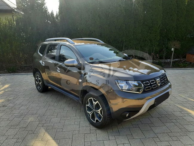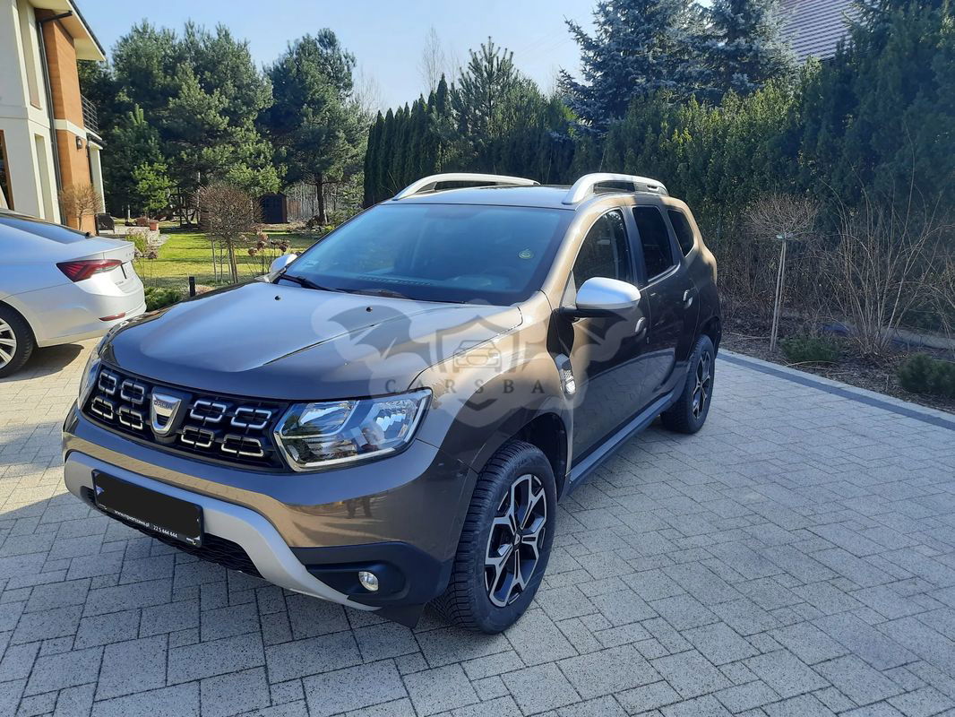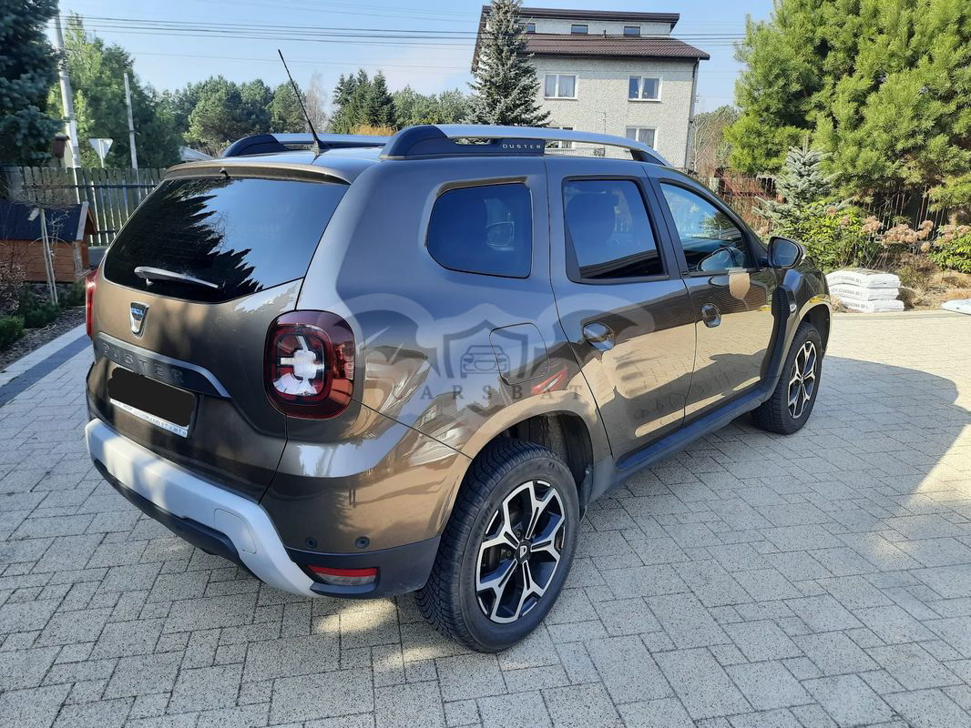 Sprzedam Dacia Duster Tce 100 LPG wersja Prestige z 2020 r. Kolor: Brązowy Vision TECNM. Pierwsi właściciele, niepalący. Auto serwisowane w ASO, zakupione w polskim salonie. Aktualny przegląd i ubezpieczenie OC. W cenie komplet opon lato/zima. Felgi aluminiowe 17 cali. Kamera cofania (fabryczna). Uszkodzenia (uwzględnione w cenie ofertowej, widoczne na zdjęciach): 1. Uszkodzony zderzak przedni i błotnik lewy przedni (uderzenie w słupek przy parkowaniu). Uszkodzenie estetyczne, bez wpływu na jazdę, auto przeszło przegląd 2. Rysa na tylnym błotniku. 3. Niedziałająca prawa tylna szyba pasażera. 4. Brak jednego ze sznurków trzymających nakrycie bagażnika. Możliwość obejrzenia w Nadarzynie po wcześniejszym umówieniu (przed g. 17tą prośba o sms - nie odbieram telefonu; po g. 17ej również telefonicznie).