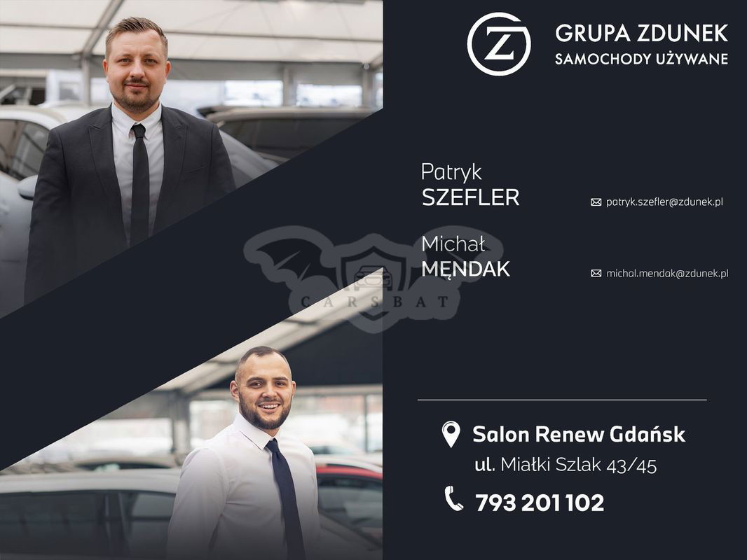 GWARANCJA I PEWNOŚĆ: Wybierając samochód od nas,otrzymujesznie tylko atrakcyjną ofertę, ale także gwarancję producenta, któratowarzyszy Ciprzez długi czas. Nasze auta są dokładnie sprawdzone iserwisowane, abyś mógłcieszyć się spokojną jazdą bez obaw. DOŚWIADCZENIE I PROFESJONALIZM: Nasz zespół składa sięzekspertów, którzy kochają samochody tak samo jak Ty. Chętnie podzielimysięnaszą wiedzą, doradzimy najlepsze rozwiązania i odpowiemy na wszystkieTwojepytania, abyś dokonał najlepszego wyboru. ATRAKCYJNE FINANSOWANIE: Wspieramy Cię w realizacjiTwoichmarzeń o nowym samochodzie poprzez różnorodne opcje finansowania, w tymkredyt ileasing. Dzięki temu stawiamy Twój komfort na pierwszym miejscu,gwarantującspłatę dostosowaną do Twoich możliwości. Nie zwlekaj, skontaktuj się z nami już dziś i umów sięnaprezentację oraz jazdę próbną. Niezależnie od tego, czy ceniszwyjątkowewyposażenie, gwarancję czy profesjonalne doradztwo - u nas znajdzieszwszystkow jednym miejscu. KONTAKT HANDLOWY: Osoby do kontaktu: Michał Męndak Patryk Szefler Jędrzej Jasiński "Niniejsze ogłoszenie ma charakter informacyjny iniestanowi oferty w rozumieniu art. 66, § 1 Kodeksu Cywilnego. Sprzedającynieponosi odpowiedzialności za błędy lub nieaktualność ogłoszenia."