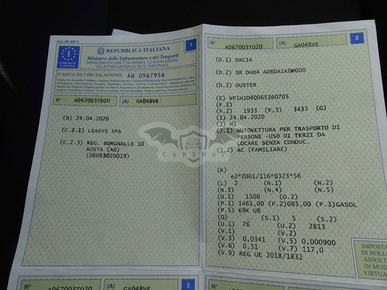• Tablica rejestracyjna: GA048VE