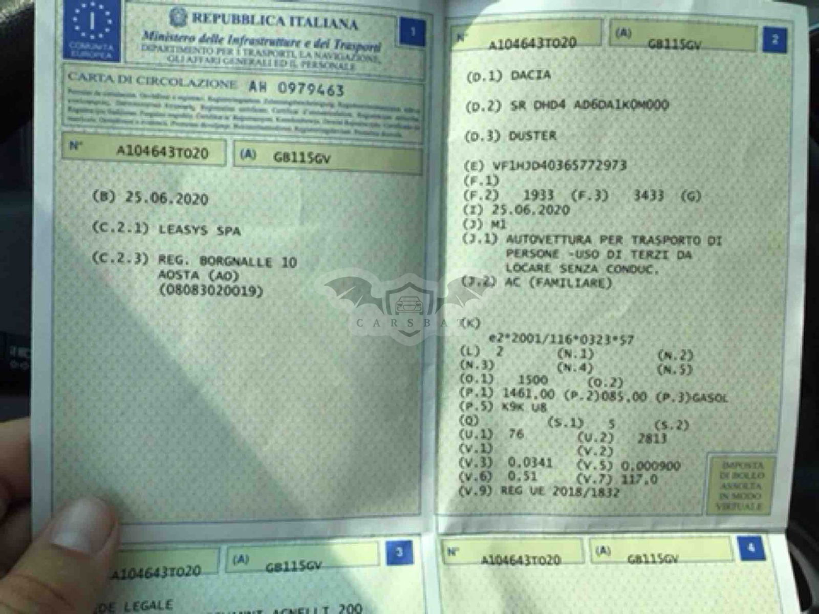 • Tablica rejestracyjna: GB115GV