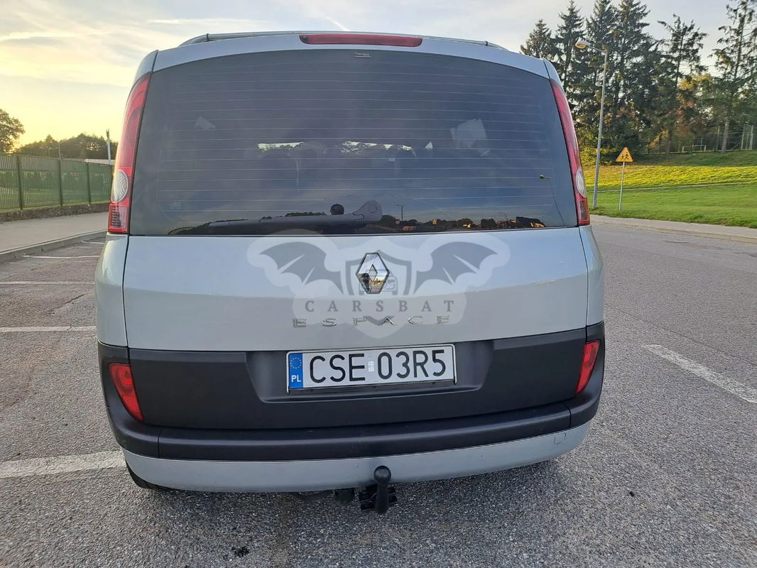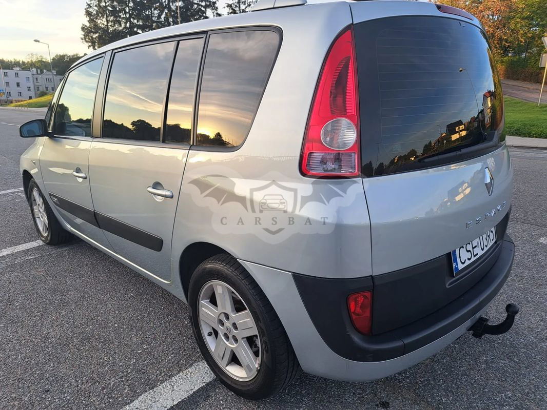 RENAULE ESPACE 2.0T 163KM Niski przebieg 216000km Wyposażenie dodatkowe : -ESP -abs -klimatyzacja automatyczna 4 strefy -el.sterownie szyb -centralny zamek -alufelgi -hak -czujnik zmierzchu -czujnik deszczu -fabryczne radio CD -tempomat Auto sprawne nie wymagające żadnych napraw - samochód w pełni przygotowany do jazdy. Nadwozie w bardzo dobrym stanie, bez poważnych uszkodzeń lub głębokich rys. Auto wyjątkowo dobrze utrzymane w doskonałym stanie technicznym oraz wizualnym. Auto zarejestrowane w Polsce sprowadzone z Holandii, przebieg udokumentowany. Sprzedaż na fakturę VAT-marża - kupujący zwolniony z opłaty PCC 2%. Na wszelkie pytania z przyjemnością odpowiem podczas rozmowy telefonicznej.