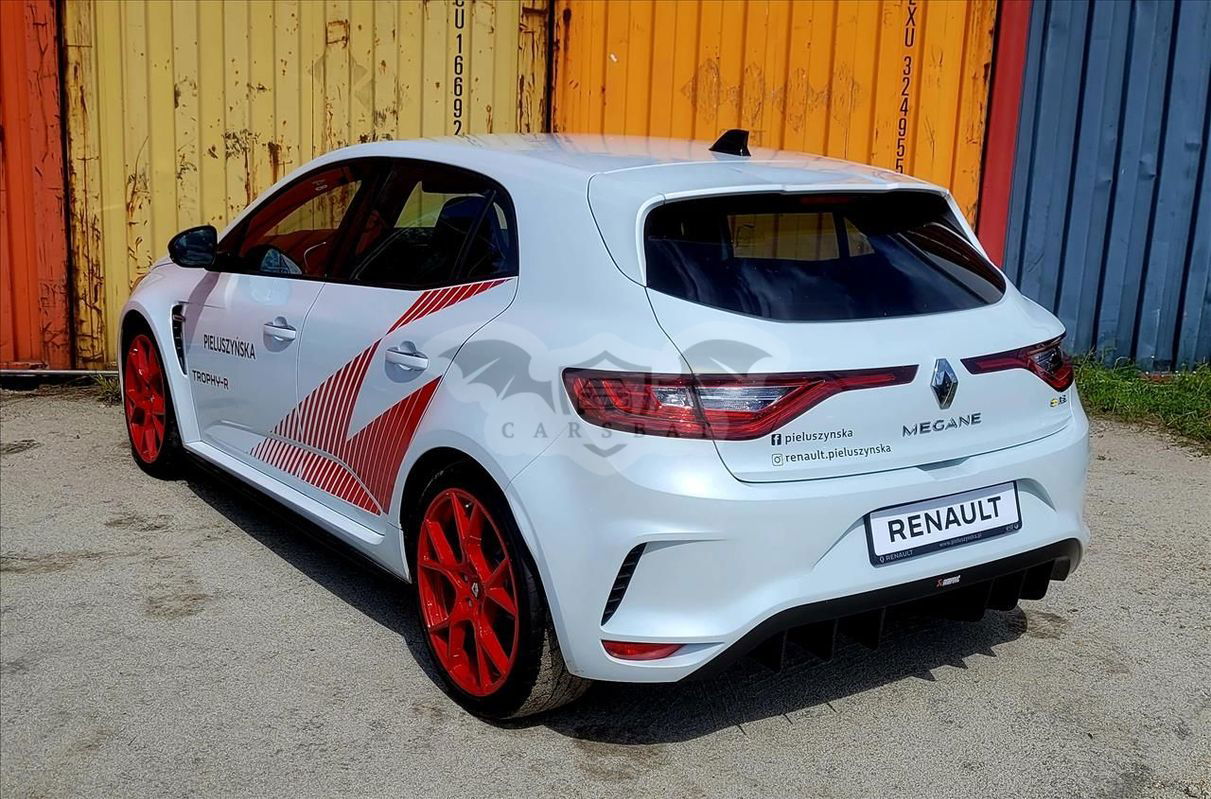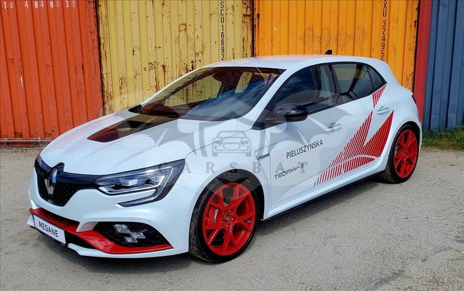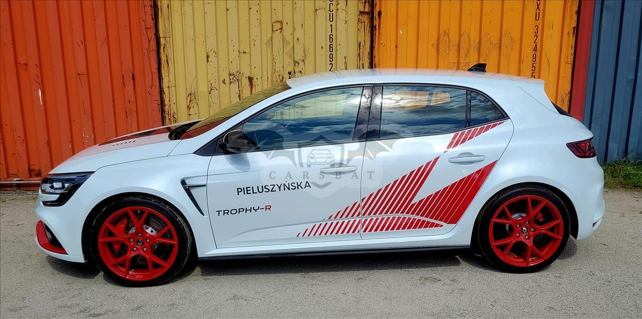 Renault Megane R.S. Trophy-R Tylko 500 aut wyprodukowanych na całym świecie Tylko 12 aut wyprodukowanych na rynek polski, możliwych do zamówienia u wybranych Specjalistów Renault Sport ROK PRODUKCJI 2020 1-REJESTRACJA 28.09.2020 ROK. NR.REJ. PO 1RS01 PRZEBIEG 347 KM CENA 389.000 ZŁ KUBEŁKOWE,JEDNOCZĘSCIOWE FOTELE MARKI SABELT Wykonane z kompozytu i pokryte Alcantrą mają mniejszą masę o około 7 kg/fotel i gwarantują świetne trzymanie w zakretach. Oba fotele przednie mają 3-położeniową regulację w pionie. Fotele są przystosowane do montażu 6-punktowych pasów bezpieczeństwa. R.S. MONITOR I KIEROWNICA POKRYTA ALCANTARĄ Pokładowy system telemetryczny R.S Monitor umożliwia wyświetlanie na ekranie R-LINK 2 w czasie rzeczywistym parametrów samochodu i Twoich reakcji za kierownicą. Kierownica pokryta Acantrą pozwala na sportową jazdę na torze bez konieczności zakładania rękawic. TYTANOWY UKŁAD WYDECHOWY AKRAPOVIČ I KARBANOWY TYLNY DYFUZOR Tytanowy układ wydechowy Akrapovič zmniejsza masę samochodu o 6 kg, zapewniając przy tym bardziej rasowe brzmienie silnika Karbonowy tylny dyfuzor z wąskimi, wyprofilowanymi łopatkami w stylu F1® daje lepszy przepływ powietrza, który z kolei pozwala zwiększyć siłę docisku. SAMOBLOKUJĄCY MECHANIZM RÓŻNICOWY TORSEN I REGULOWANE ZAWIESZENIE ÖHLINS Mechanizm różnicowy Torsen® pozwala zwiększyć zakres asymetrii przenoszonego momentu napędowego przy przyspieszaniu i hamowaniu, dzięki czemu prędkość pokonywania zakrętów jest większa. Regulowane zawieszenie Öhlins pozwala na optymalne dostosowanie zawieszenia do warunków na torze lub drodze RENAULT MEGANE R.S TROPHY-R WYPOSAŻENIE Confidential CR.S. TROPHY-R BEZPIECZEŃSTWO CZYNNE I BIERNE ABS z systemem wspomagania nagłego hamowania (AFU) ● System dynamicznej kontroli toru jazdy (ESC) ● System kontroli ciśnienia w oponach ● Regulator-ogranicznik prędkości ● Czołowe poduszki powietrzne kierowcy i pasażera ● Sygnalizacja niezapięcia pasów bezpieczeństwa kierowcy ● 3-punktowe pasy bezpieczeństwa na przednich miejscach ● Instalacja do montażu alarmu ● PROWADZENIE POJAZDU R-EPS układ kierowniczy mechaniczny z elektrycznie napędzaną listwą zębatą ● Ręczny hamulec postojowy ● Zespół zegarów i wskaźników z kolorowym, 7-calowym ekranem TFT ● Karta Renault Hands Free ● System MULTI-SENSE (wersja podstawowa) ● Kamera cofania ● System R.S. Monitor ● Regulowane amortyzatory Öhlins ● Zawieszenie CUP dedykowane dla Trophy-R ● Dwumateriałowe tarcze hamulcowe aluminiowo-żeliwne ● Samoblokujący mechanizm różnicowy Torsen® ● WIDOCZNOŚĆ – OŚWIETLENIE Światła do jazdy dziennej LED "Edge Light" ● Światła przednie Full LED „Pure Vision” ● Tylne światła LED 3D "Edge Light" ● System wielofunkcyjnych świateł LED R.S. Vision ● Wycieraczki przedniej szyby o zmiennej częstotliwości pracy, czujnik deszczu i światła ● KOMFORT Klimatyzacja automatyczna, dwustrefowa ● Lusterka boczne elektrycznie sterowane i podgrzewane ● Elektrycznie podnoszone szyby przednie ● Centralny zamek drzwi ● Kierownica z regulacją wysokości i głębokości pokryta skórą Alcantara - dedykowana dla Trophy-R ● FOTELE – SCHOWKI Fotele przednie kubełkowe Sabelt - jednoczęściowe wykonane z kompozytu, pokryte Alcantarą® ● Siatka zabezpieczająca do przewożenia sportowych kół* 1000 MULTIMEDIA Radioodtwarzacz cyfrowy (DAB) Bluetooth®, USB/jack, wyświetlacz kolorowy 7'' ● Mapy Europy w wersji rozszerzonej ● Dostęp do usług interaktywnych ● WYGLĄD WEWNĘTRZNY Tonacja wnętrza w kolorze czarnym ● Tapicerka Alcantara® ● Aluminiowe nakładki na pedały ● Oznakowanie wewnętrzne RENAULT SPORT ● WYGLĄD ZEWNĘTRZNY Elementy design zewnętrznego w kolorze czarnym ● Specjalny przedni zderzak z grillem i dolną częścią o strukturze plastra miodu ● Oznaczenie TROPHY-R na przedniej listwie aerodynamicznej F1 ● Tylny dyfuzor karbonowy typu F1 ● Tytanowy układ wydechowy Akrapovič ● Oznakowanie zewnętrzne RENAULT SPORT ● Pokrywa silnika z kompozytu zbrojonego włóknem węglowym ● Obręcze kół ze stopu metali lekkich 19", wzór Fuji w kolorze czerwonym ● Opony Bridgestone Potenza S007 245/35/19 ● Zaciski hamulcowe Brembo w kolorze czerwonym ● Zestaw do naprawy uszkodzenia opony ● Czerwone oklejenie, charakterystyczne dla Trophy-R ● Lakier metalizowany specjalny QNC (Biała Perła Kontakt telefoniczny: 61 811 60 61 - Suchy Las, Obornicka 137 Zapraszamy do skorzystania z tej, jak i z wielu innych ciekawych ofert Naszego salonu! Niniejsze ogłoszenie jest wyłącznie informacją handlową i nie stanowi oferty w myśl art. 66 § 1. Kodeksu Cywilnego. Sprzedający nie odpowiada za ewentualne błędy lub nieaktualność ogłoszenia. Zdjęcie są poglądowe i mogą minimalnie różnić się od stanu faktycznego. Samochód znajduje się w naszym salonie przy ul. Obornickiej 137 w Suchym Lesie