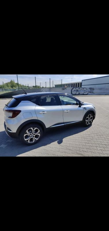 Renault Captur II kolor srebrny metalik dach czarny, silnik benzynowy 999 cm3 skrzynia manualna 6 biegowa, oszczędny, dynamiczny i elastyczny silnik, oświetlenie lampy led, bardzo gustowne zestawienie kolorystyczne.