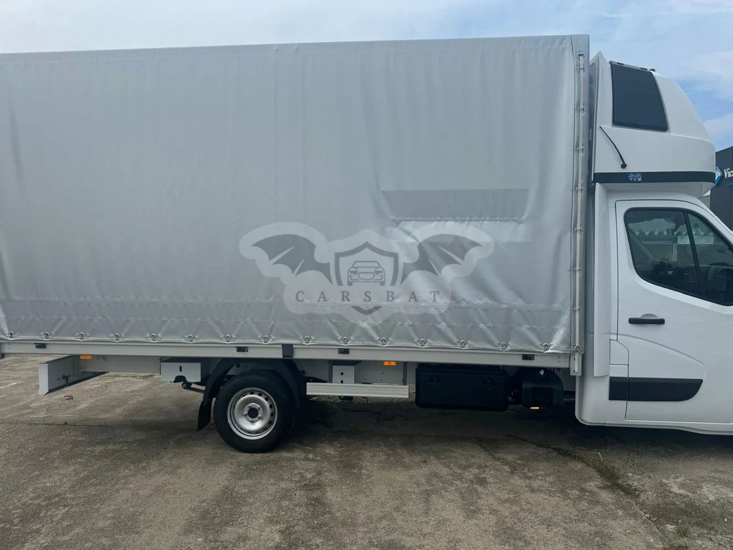Master Podwozie L3 z zabudową skrzyniową 10 Palet. Samochód Zarejestrowany dodatkowo zbuornik paliwa 105 tempomat ogranicznik prędkości halogeny Zabudowa Specyfikacja: Rama pośrednia i cała konstrukcja skrzyni wykonana z profili aluminiowych (podłużnice, poprzeczki, profil obwodowym, wzmacniane uchwyty mocowania ładunku w podłodze) 2. Burty z aluminium anodowanego 400 mm — dzielone słupki środkowe wypinane. 3. Burta tylna oraz boczne otwierane i demontowane, zamknięcia burt kasetonowe - szerokie 4. Podłoga ze sklejki wodoodpornej, antypoślizgowej (standard 15 mm). 5. Konstrukcja dachu z rurek — obsadzone w gumowych gniazdach. 6. Odeskowanie boczne pozwalające na szybki załadunek. 7. Opończa z materiału 670 g/m2 w kolorze ........................ ze świetlikiem, zamykana linką. 8. Błotniki z tworzywa sztucznego z fartuchami przeciwbłotnymi. 9. Stopień wejściowy na tylnej burcie. 10. Listwy antynajazdowe z profilu aluminiowego anodowanego. 11. Światła obrysowe LED — zgodnie z KRD. 12. Dokumentacja do rejestracji — homologacja EU. 13. Ogrzewanie postojowe standard - Eberspaecher lub Webasto z programatorem 14. Skrzynka narzędziowa 750×360×350 15. Pojemnik na wodę z dozownikiem na mydło 16. Tolerancja wymiarów zabudowy +/- 2% - Sypialka Standard LAMICO – wymiar od 930-1020 mm (w zależności od modelu auta) - ALU Regulacja wysokości 300 mm + firana z naciągiem od strony kierowcy (reg. wspomagana pneumatycznie, aluminiowy stelaż, słupy jednolite, rurki aluminiowe) - Odeskowanie aluminiowe - Poduszki pneumatyczne z kompresorem - Dodatkowy akumulator przy montażu dodatkowego ogrzewania postojowego, montowany w skrzynce narzędziowej - Ilość uchwytów mocowania ładunku po 5 szt. na stronę Łukasz