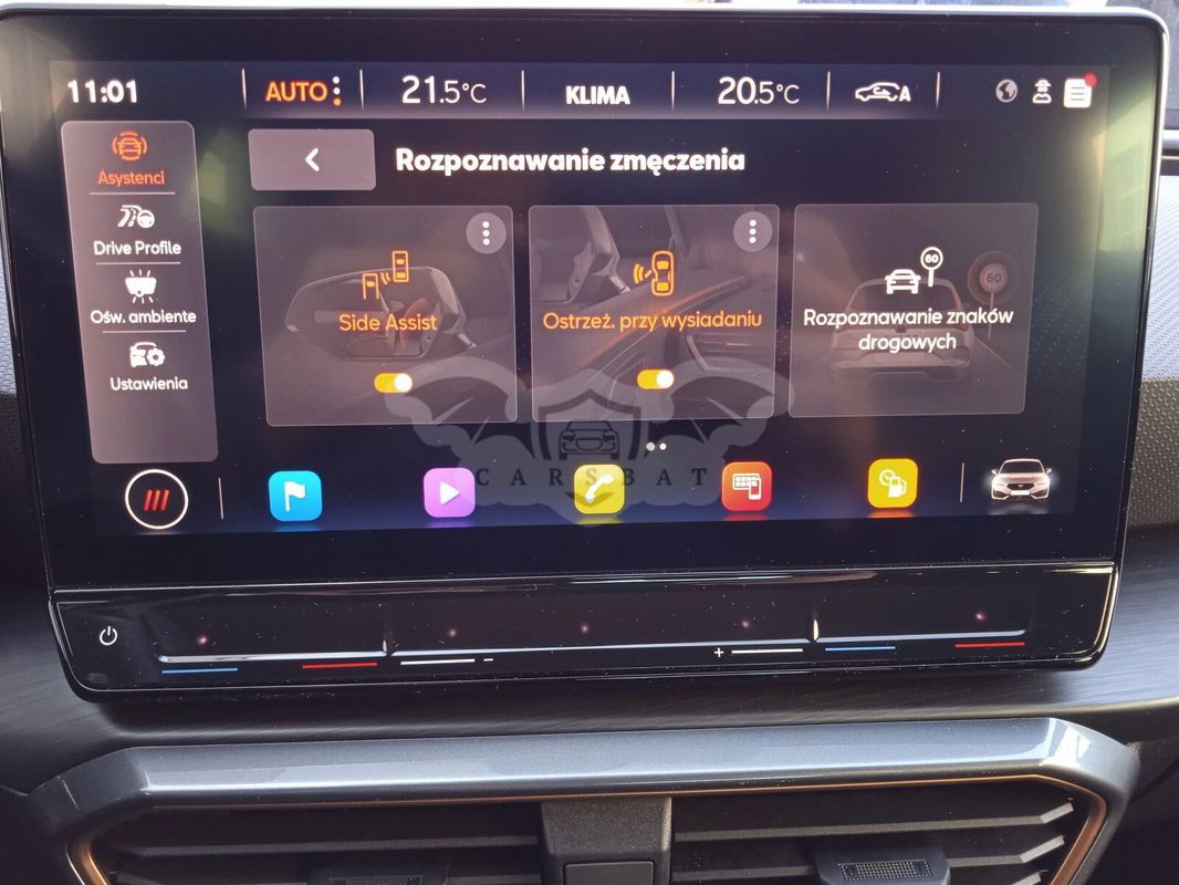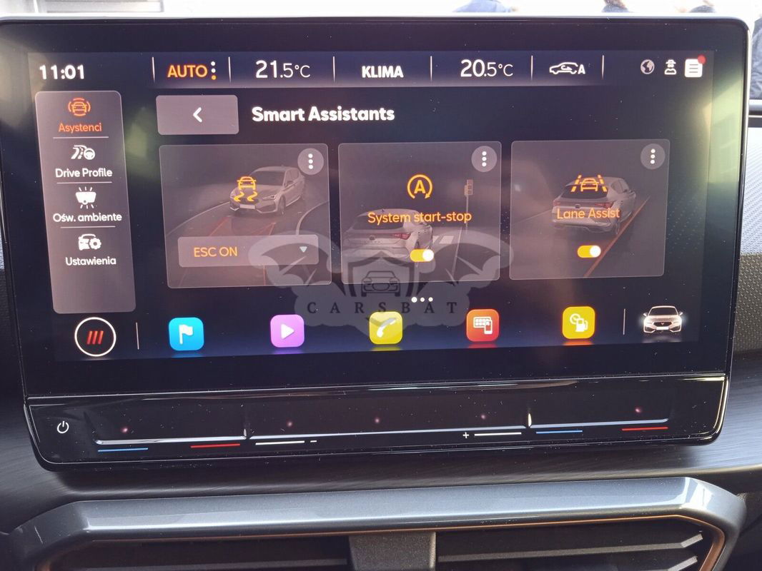 Wyposażenie dodatkowe: - Pakiet Comfort+ (Zwieszenie adaptacyjne, Pakiet wspomagania jazdy L, Podsufitka w kolorze czarnym) - Pakiet Matrix LED (Coming and Leaving Home - automatyczna funkcja opóźnionego wyłączania światła, Lampy tylne LED ze zintegrowanymi dynamicznymi kierunkowskazami, Światła do jazdy dziennej LED, Światła przeciwmgielne LED z funkcją doświetlania zakrętów, Ośwetlenie powitalne LED w lusterkach bocznych i tylnych światłach, Funkcja świateł autostradowych, Lampy przednie pełne Matrix LED funkcją automatycznej regulacji natężenia światła) - Pakiet wspomagania jazdy XL dla samochodów z Navi System+ (Tempomat predykcyjny (ACC) z funkcją dostosowania prędkości jazdy do znaków drogowych i nawigacji, Asystent świateł drogowych High Beam Assist, System rozpoznawania znaków drogowych Traffic Sign Recognition, System monitorowania martwego pola Side Assist z f.wsp. wyjazdu z miej.parkingowego Exit Assist, Sygnalizacja o zbliżającym się pojeździe w czasie wysiadania Exit Warning, Asystent aktywnego utrzymania pasa ruchu Lane Assis Plus, Asystent podróży z asystentem jazdy w korku Travel Assist, Inteligentny asystent bezpieczeństwa Emergency Assist, Łopatki zmiany biegów przy kierownicy, Asystent zmiany pasa ruchu po włączeniu kierunkowskazu) - Ambientowe oświetlenie kokpitu LED z możliwością wyboru koloru - BeatsAudio - system audio premium, 340 W, wzmacniacz, 9 głośników, subwoofer - Lakier metalizowany - Schowek z funkcją bezprzewodowego ładowania telefonu i wzmacniaczem sygnału Wyposażenie standardowe: ABS, ESC,HBA, TCS Asystent parkowania oraz czujniki parkowania z przodu i z tyłu Asystent pasa ruchu Lane Assist Asystent podjazdu i zatrzymania Auto Hold CUPRA CONNECT dla Media System+ (bezpieczeństwo i serwis, zdalany dostęp) Cupra Drive Profile: 4 profile umożliwiające zmianę reakcji silnika, wspomagania kierow. skrzyni bie Czujnik deszczu Czujnik zmierzchu (automatyczne światła) DAB - funkcja odbioru programów radiowych w formie cyfrowej Dywaniki materiałowe przód i tył EDL z XDS elektroniczna blokada mechanizmu różnicowego Elektrycznie sterowane szyby z przodu i z tyłu Felgi aluminiowe 18 CUPRA MACHINED SPORT BLACK, SILVER w kolorze czarnym z elementami srebrnymi Fotele przednie z regulacją odcinka lędźwiowego Fotele przednie z regulacją wysokości Fotele sportowe przednie Full Link Funkcja świateł autostradowych Hamulec pokolizyjny ograniczający skutki kolejnych kolizji (Multi Collision Brake) Hamulec postojowy, elektromechaniczny Kierownica wielofunkcyjna sportowa w skórze Klamki w kolorze nadwozia Klimatyzacja automatyczna 3-strefowa Climatronic z AirCare i czujnikiem jakości powietrza Lakier niemetalizowany Lampy przednie pełne LED Listwa okien w kolorze lśniącej czerni Lusterka boczne regulowane elektrycznie i składane z funkcją autom. obniżania luterka pasażera Lusterka boczne w kolorze ciemnego aluminium Lusterko wsteczne automatycznie przyciemniające się Nakładki progowe, podświetlane w przednich drzwiach LED Obramowanie osłony chłodnicy w kolorze szarym Osłony przeciwsłoneczne z zamykanymi i podświetlanymi lusterkami Ośwetlenie powitalne LED w lusterkach bocznych i tylnych światłach Oświetlenie LED drzwi, bagażnika, lampki do czytania, przestrzeni na nogi przód, schowka, osł.p.słon Poduszki powietrzne 7 (2 przednie, 2 boczne, 2 kurtynowe, poduszka centralna) Podłokietnik z przodu i z tylu Półka na dokument pod fotelem kierowcy System Media Plus (10 calowy ekran dotykowy, radio, 7 głośników, 4xUSB, głosowe sterowanie, BT) System bezkluczykowego dostępu i uruchamiania samochodu KESSY System kontroli ciśnienia powietrza w oponach System kontroli odstępu Front Assist z funkcją hamowania i funkcją ochrony pieszych i rowerzystów System przypominający o zapmięciu pasów bezpieczeństwa przód, tył System rozpoznawania zmęczenia Szyby przyciemniane (barwione) Tapicerka materiałowa łączona ze skórą ekologiczne z logo Cupra i przeszyciem w kolorze miedzi Tylne oparcie składane i dzielone Tylny spojler lakierowany w kolorze nadwozia Uchwyty ISOFIX z Top Tetcher na zewnętrznych miejscach tylnej kanapy oraz na fotelu pasażera z przod Wirtualny kokpit, cyfrowa tablica przyrządów z kolorowym ekranem TFT Wnętrze CUPRA z elementami dekoracyjnymi deski rozdzielczej w kolorze ciemnego aluminium i miedzi Wspomaganie układu kierowniczego, progresywne Wyłącznik poduszki powietrznej pasażera Zaciski hamulców w kolorze czarnym Zamek centralny ze zdalnym sterowaniem i otwieraniem pokrywy bagażnika Zderzaki CUPRA dedykowane Łopatki zmiany biegów przy kierownicy Możliwość pozostawienia swojego samochodu w rozliczeniu Kontakt w godzinach pracy salonu: ŁUKASZ KOSMALSKI tel.kom.+ 48 GRZEGORZ CICHOWSKI tel. kom. + 48 MARCIN MATEJA tel.kom. + 48 Godziny otwarcia: Od Poniedziałku do Piątku. W godzinach 8:00 - 18:00. Sobota 8:00-14:00 Niniejsze ogłoszenie jest wyłącznie informacją handlową i nie stanowi oferty w myśl art. 66, §1. Kodeksu Cywilnego. Sprzedający nie odpowiada za ewentualne błędy lub nieaktualność ogłoszenia.