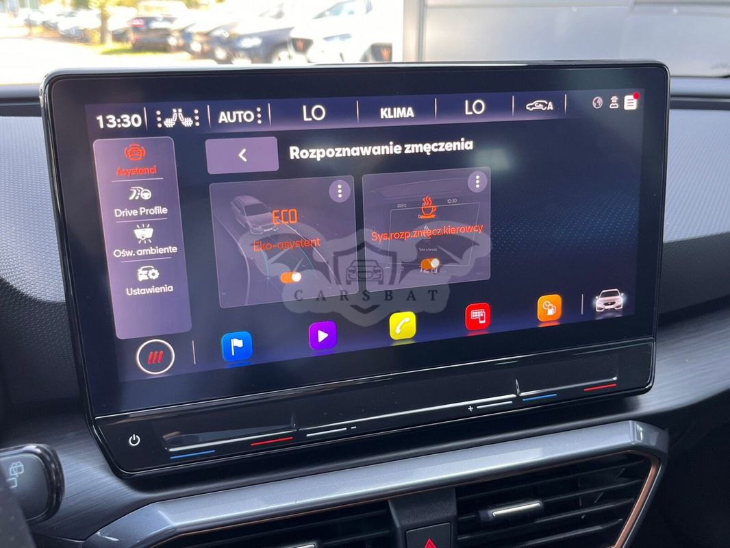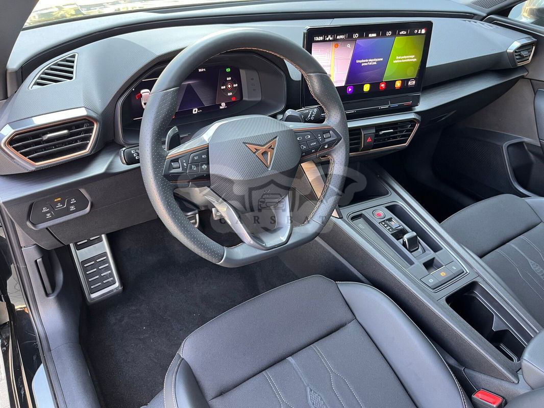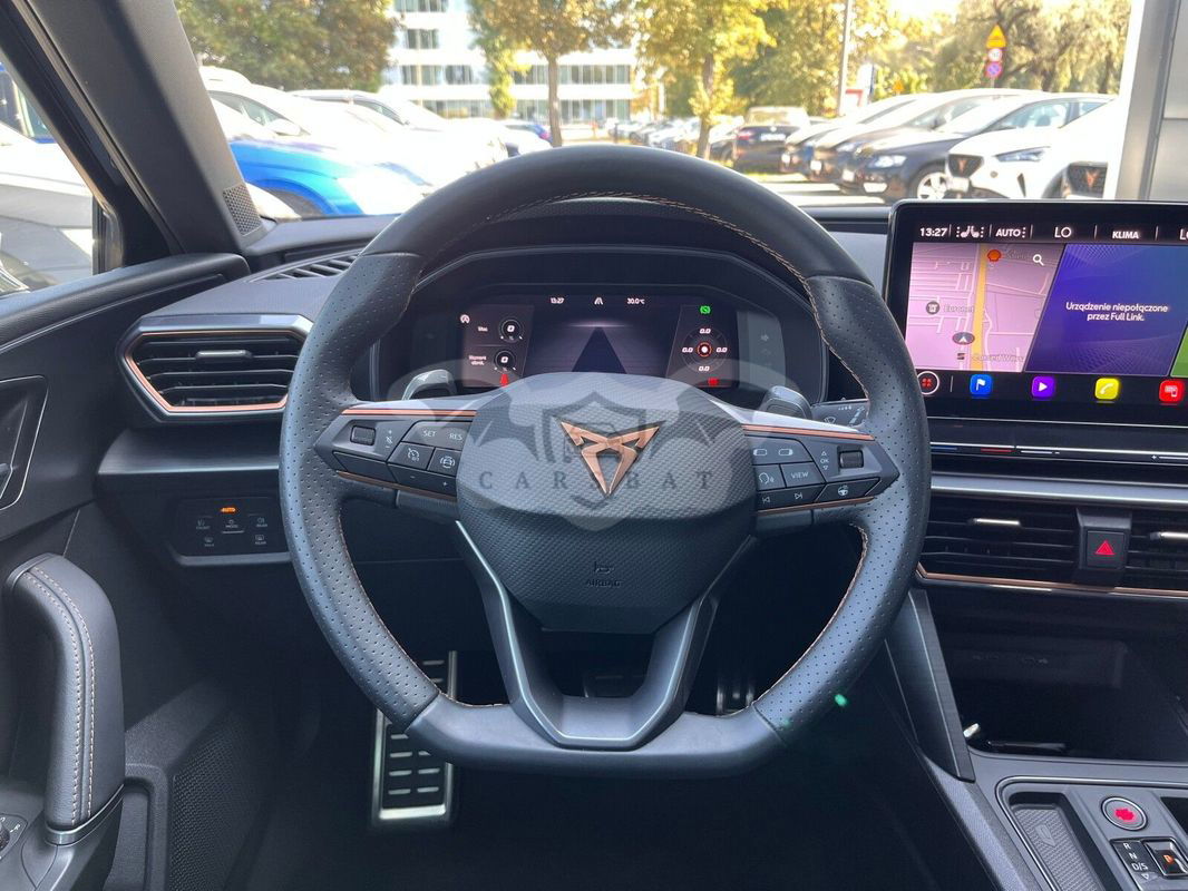 Cupra Leon VZ Silnik:2.0 Skrzynia biegów automatyczna . Pojazd zakupiony oraz serwisowany w polskim salonie. Numer rejestracyjny: WW 391TV Data 1 rejestracji:2023-12-29 VIN: VSSZZZKL7PR063657 I właściciel Samochód bezwypadkowy. Samochód sprzedawany na podstawie faktura VAT-23% Możliwość atrakcyjnego kredytu/leasingu Możliwość pozostawienia samochodu w rozliczeniu Możliwość zakupu auta tylko w finansowaniu VWFS! ABS - system zapobiegający blokowaniu kół Ambientowe oświetlenie kokpitu LED z możliwością wyboru koloru, Asystent parkowania (przód i tył) Asystent pasa ruchu Lane Assist Asystent podjazdu z funkcją Auto Hold Automatyczny hamulec pokolizyjny ograniczjący skutki kolejnych kolizji (Multi Colision Brake) Dedykowane zderzaki CUPRA Dywaniki welurowe przód/tył Fotel kierowcy i pasażera z regulacją podparcia lędzwiowego Fotel kierowcy i pasażera z regulacją wysokości Fotele przednie kubełkowe z logo CUPRA - tapicerka skóra ekologiczna i przeszyciem w kolorze miedzi Hamulec postojowy elektryczny Immobilizer Kamera cofania Kanapa tylna dzielona i składana Kierownica wielofunkcyjna sportowa pokryta skórą Klamki w kolorze nadwozia Klimatyzacja automatyczna Air Care Climatronic z filtrem AirCare i czujnikiem jakości powietrza Koło zapasowe dojazdowe 18" Kurtyny powietrzne przednie Lakier niemetalizowany biały Candy White Listwy okien bocznych w kolorze lśniącej czerni Lusterka zewnętrzne w kolorze ciemnego aluminium Lusterka zewnętrzne z funkcją pamięci przy cofaniu Łopatki zmiany biegów przy kierownicy Mocowanie ISOFIX fotelika dziecięcego na skrajnych fotelach z tyłu i fotelu pasażera z przodu Nakładki na pedały sportowe Osłona chłodnicy w kolorze szarym Osłony przeciwsłoneczne podwójne z lusterkami podświetlanymi Podłokietnik przedni Podłokietnik tylny centralny Podsufitka czarna Podświetlane LED nakładki progowe w przednich drzwiach Poduszka powietrzna centralna Poduszka powietrzna kierowcy Poduszka powietrzna pasażera z możliwością odłączenia Poduszki powietrzne boczne Półka bagażnika Półka na dokumnety pod fotelem kierowcy System bezkluczykowego dostępu i uruchamiania pojazdu KESSY System Bluetooth System Cupra Connected dla Navi system System Cupra Drive Profile (4 profile jazdy) System elektronicznje blokady mechanizmu różnicowego:EDL z XDS System kontroli ciśnienia w oponach System kontroli odstępu Front Assist z funkcją awaryjnego hamowania i funkcją ochrony pieszych i rowerzystów System przypominający o zapięciu pasów przódnich i tylnych foteli System rozpoznawania zmęczenia kierowcy System stabilizacji toru jazdy ESC System stabilizacji toru jazdy przyczepy TSC Szyby przyciemniane Tarcze kół aluminiowe 19" CUPRA MACHINED SPORT BLACK/SILVER z elem. w kolorze srebrnym Tempomat z ogranicznikiem prędkości Tuner radiowy cyfrowy DAB Tylny spojler Cupra w kolorze nadwozia Układ wspomagania nagłego hamowania HBA Wirtualny kokpit: cyfrowa tablica przyrządów z kolorowym ekranem TFT 10,25" Wnętrze CUPRA z elementami dekoracyjnymi deski rozdzielczej w kolorze ciemnego aluminium i miedzi Wspomaganie układu kierowniczego progresywne Zaciski hamulców z logo CUPRA czarne Zamek centralny ze sterowaniem klapy bagażnika Zawieszenie adaptacyjne DCC Nasi doradcy: Mateusz Kowalczyk tel. e-mail: mateusz.kowalczyk(at)carsed.pl Kamil Sobiepanek tel. e-mail: kamil.sobiepanek(at)carsed.pl Godziny otwarcia: poniedziałek - piątek, godz. 8:00 - 17:00 sobota, godz. 9:00 - 15:00 Ogłoszenie ma charakter informacyjny i stanowi zaproszenie do zawarcia umowy (art. 71 Kodeksu cywilnego); nie stanowi natomiast oferty handlowej w rozumieniu art. 66 § 1 Kodeksu cywilnego. W celu sprawdzenia zgodności oferty oraz uzyskania wszelkich informacji prosimy kontaktować się z handlowcem d.s. samochodów używanych. Niniejsze ogłoszenie