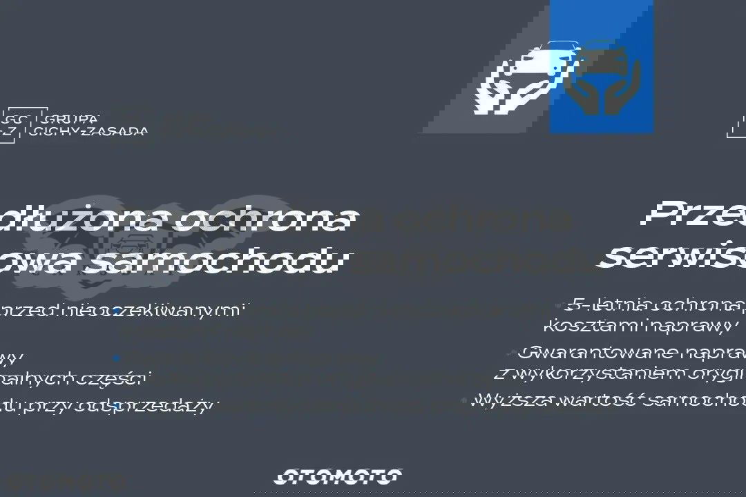 Grupa Cichy-Zasada to największa grupa dealerska w branży motoryzacyjnej w Polsce. Od 30 lat jesteśmy autoryzowanym dealerem renomowanych marek motoryzacyjnych takich jak Volkswagen, Skoda, Audi, Seat, Cupra oraz Volkswagen Samochody Dostawcze. Posiadamy 29 Oddziałów zlokalizowanych w 8 miastach w Polsce. Działamy na terenie całej Polski oferując najwyższą jakość obsługi oraz dostosowanie się do potrzeb naszych Klientów. Chcesz uzyskać więcej informacji? Nasi doradcy chętnie odpowiedzą na wszystkie Twoje pytania! Zadzwoń: Napisz do nas na Facebooku: https://www.facebook.com/SeatCentrumPoznan/ _________________ Lokalizacja pojazdu: Grupa Cichy-Zasada Centrum Poznań ul. Jadwigi Wajsówny 9 60-002 Poznań Oferta dotyczy: CUPRA Formentor 2.0 TSI 190 KM 7-biegowa automatyczna - DSG 4Drive. Oferta dotyczy samochodu DEMO dostępnego od ręki! Przebieg: 10175 km Cena pojazdu: 171 900,00 PLN brutto Forma sprzedaży: faktura VAT 23% Kolor nadwozia: S7S7: Magnetic Tech Tapicerka siedzeń: Tapicerka materiałowa ze skórą ekologiczną w kolorze czarnym, fotele sportowe. Obręcze aluminiowe- 19-calowe felgi aluminiowe CUPRA MACHINED SPORT BLACK/SILVER w kolorze czarnym z elelmentami w kolorze srebrnym. __________ Wyposażenie dodatkowe: - Fotele przednie kubełkowe z elektryczną regulacją fotela kierowcy (Fotele przednie kubełkowe, Tapicerka materiałowa z ekoskórą z przeszyciem w kolorze miedzi, Fotel kierowcy z pełną regulacją elektryczną oraz pamięcią ustawień, Lusterka z pamięcią ustawień) - Dach szklany panoramiczny otwierany elektrycznie - Oświetlenie Ambientowe kokpitu LED z możliwością wyboru koloru - Schowek z funkcją bezprzewodowego ładowania telefonu i wzmacniaczem sygnału __________ Wyposażenie standardowe: Asystent parkowania z czujnikami parkowania z przodu i z tyłu Asystent pasa ruchu Lane Assist Asystent świateł drogowych High Beam Assist Automatyczny hamulec pokolizyjny ograniczający skutki kolejnych kolizji Multi Collision Brake 5 lat gwarancji CUPRA CUPRA CONNECT dla Media System(Bezpieczeństwo i serwis 10 lat,zdalny dostęp 1rok) CUPRA Drive Profile: 4 profili jazdy umożliwiające zmianę reakicji silnka, wspomagania i skrzyni Czujnik deszczu Czujnik zmierzchu Fotele przednie podgrzewane Fotele przednie z regulacją wysokości i lędźwiową Full Link Funkcja automatyczna opóźnionego wyłączania świateł Coming and Leaving Home Funkcja łatwego składania tylnych siedzeń Funkcja świateł autostradowych Hamulec postojowy elektromechaniczny Kamera cofania Kierownica wielofunkcyjna sportowa, podgrzewana Klimatyzacja automatyczna trzystrefowa Climatronic z filtrem AirCare i czujnikiem powietrza AQS Lampki LED do czytania z przodu i z tyłu Lampki LED przy osłonach przeciwsłonecznych Lampy przednie LED Lampy tylne LED z dynamicznymi kierunkowskazami Lusterka boczne elektrycznie regulowane, podgrzewane i składane Lusterka boczne w kolorze ciemnego aluminium Lusterko pasażera automatycznie obniżające się podczas cofania Lusterko wsteczne elektrochromatyczne Ogranicznik prędkości Osłony przeciwsłoneczne z przodu z zamykanymi i podświetlanymi lusterkami Oświetlanie powitalne LED w lustrkach bocznych Oświetlenie LED schowka w desce rozdzielczej Oświetlenie drzwi LED Oświetlenie drzwi bagażnika LED Oświetlenie przestrzeni na nogi z przodu w technologii LED Podłoga bagażnika podwójna Podświetlane nakładki progowe w przednich drzwiach LED System Front Assist z funkcją awaryjnego hamowania i funkcją ochrony pieszych i rowerzystów System Media Plus wyśw.10/Radio MP3/WMA/USB/rozbudowane rozpoznawanie mowy System bezkluczykowego dostępu i uruchamiania samochodu KESSY System kontroli ciśnienia powietrza w oponach System przypominający o konieczności zapinania pasów przy przednich i tylnych fotelach System rozpoznawania zmęczenia kierowcy Szyby przednie i tylne elektrycznie sterowane TCS - system kontroli trakcji Tapicerka materiałowa z ekoskórą z przeszyciem w kolorze miedzi Tempomat aktywny (ACC) Tuner DAB Tylne oparcie składane i dzielone Uchwyt na napoje z przodu Uchwyty ISOFIX i Top Tether przy siedzeniach tylnej kanapy Uchwyty ISOFIX i-Size na fotelu pasażera z przodu Wirtualny kokpit: cyfrowa tablica przyrządów z kolorowym ekranem TFT 10,25 Wspomaganie układu kierowniczego - progresywne Wykończenie wnętrza CUPRA z elementami dekoracyjnymi deski rozd.w kolorze ciemnego aluminium i miedz XDS - Elektroniczna blokada mechanizmu różnicowego Zamek centralny ze zdalnym sterowaniem, dwa składane kluczyki, otwieraniedrzwi bagażnika z pilota Zderzaki dedykowane CUPRA Światła do jazdy dziennej LED Światła przeciwmgielne LED z funkcją doświetlania zakrętów 109310 ___________________ Dodatkowo oferujemy: - Możliwość pozostawienia obecnego samochodu w rozliczeniu (zdalna wycena wstępna) - Atrakcyjne formy finansowania Volkswagen Financial Services (kredyt, leasing) - Promocyjne pakiety ubezpieczeniowe OC/AC/NW - Pakiety Przeglądów Serwisowych - Przedłużoną Gwarancję Zastanawiasz się, jak sfinalizować zakup swojego auta? Nie musisz wychodzić z domu, nasi doradcy zdalnie pomogą na każdym etapie procesu zakupu: • skontaktuj się z nami - zadzwoń pod nr telefonu • przygotujemy ofertę • dostosujemy ofertę finansowania i ubezpieczenia • jeśli jesteś z innego miasta w Polsce odbierzemy Cię z lotniska lub dworca ___________________ Grupa Cichy-Zasada Centrum Poznań Autoryzowany Salon i Serwis Seat i Cupra ul. Jadwigi Wajsówny 9 60-002 Poznań Tel. Indywidualne uzgodnienie właściwości i specyfikacji pojazdu następuje przy sprzedaży auta. Ogłoszenie nie stanowi oferty w rozumieniu art. 66 § 1 Kodeksu cywilnego lecz ma charakter informacyjny i stanowi zaproszenie do zawarcia umowy w rozumieniu art. 71 Kodeksu cywilnego.