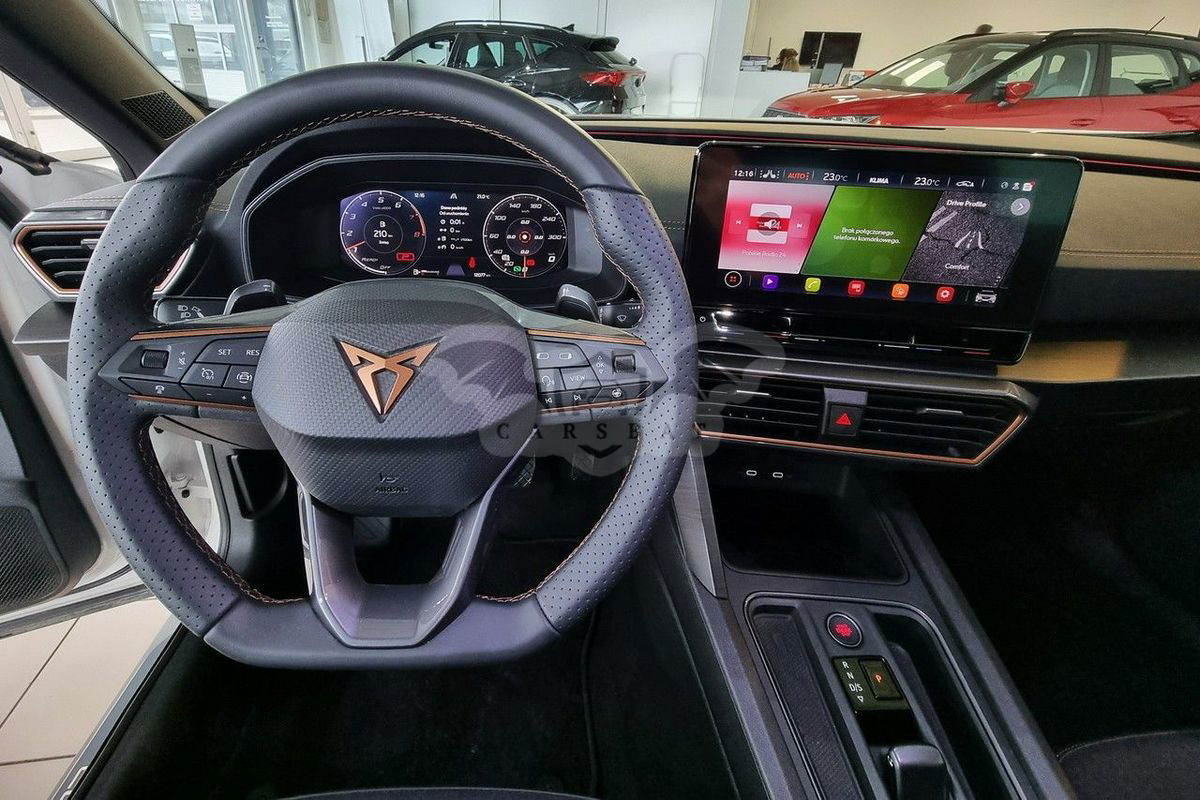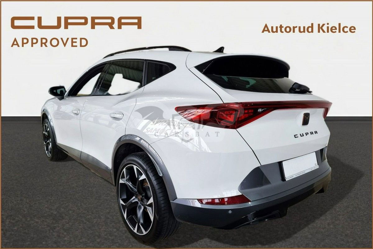 Cupra Formentor 2.0TSI 190KM 4x4 z 7-biegową automatyczną skrzynią DSG 2023 rok produkcji Drugi właściciel Gwarancja fabryczna do 2025-07-25 + dwa lata dodatkowej gwarancji. Faktura VAT 23% Auto bezwypadkowe Wyposażenie : Skórzana wielofunkcyjna, podgrzewana kierownica z łopatkami do zmiany biegów Tempomat adaptacyjny Front Assist Asystent pasa ruchu Asystent martwego pola Asystent wyjazdu z parkingu Ogranicznik prędkości Wybór trybów jazdy Virtual Cockpit Pakiet oświetlenia Ambiente 4 elektryczne szyby Elektrycznie sterowane, podgrzewane oraz elektrycznie składne lusterka Czujnik zmierzchu Czujnik deszczu Kamera cofania Czujniki parkowania Elektryczny hamulec ręczny z funkcją Auto-Hold Fotochromatyczne lusterko wsteczne Felgi aluminiowe 19-calowe z ogumieniem letnim Podgrzewane fotele przdnie Klimatyzacja automatyczna 3-strefowa Full-Link z możliwością przesyłania nawigacji GPS na ekran radia Przyciemniane szyby tylne Key-Less Kupujący zwolniony od opłaty skarbowej - wystawiamy fakturę VAT 23% Samochód dostępny do obejrzenia w salonie Autorud Skoda Kielce na ulicy Krakowskiej 285 w Kielcach. Przyjmujemy auta w rozliczeniu oraz skupujemy auta za gotówkę. Atrakcyjna oferta finansowania kredytem lub leasingiem w VW Bank Zapraszamy również do kontaktu telefonicznego : Paweł : 506 - 048 - 556 Igor : 785 - 552 - 202 Prezentowana oferta cenowa ma charakter informacyjny, nie stanowi oferty handlowej w rozumieniu Art.66 par.1 Kodeksu Cywilnego oraz nie stanowi odzwierciedlenia aktualnych stanów magazynowych. Aby sprawdzić aktualność ceny i zgodność oferty z rzeczywistością Użytkownik powinien skontaktować się z przedstawicielem handlowym sklepu z którego pochodzi oferta. - Dodatkowe informacje: liczba poduszek powietrznych: 8, liczba miejsc: 5 Numer oferty: AKL181JVD