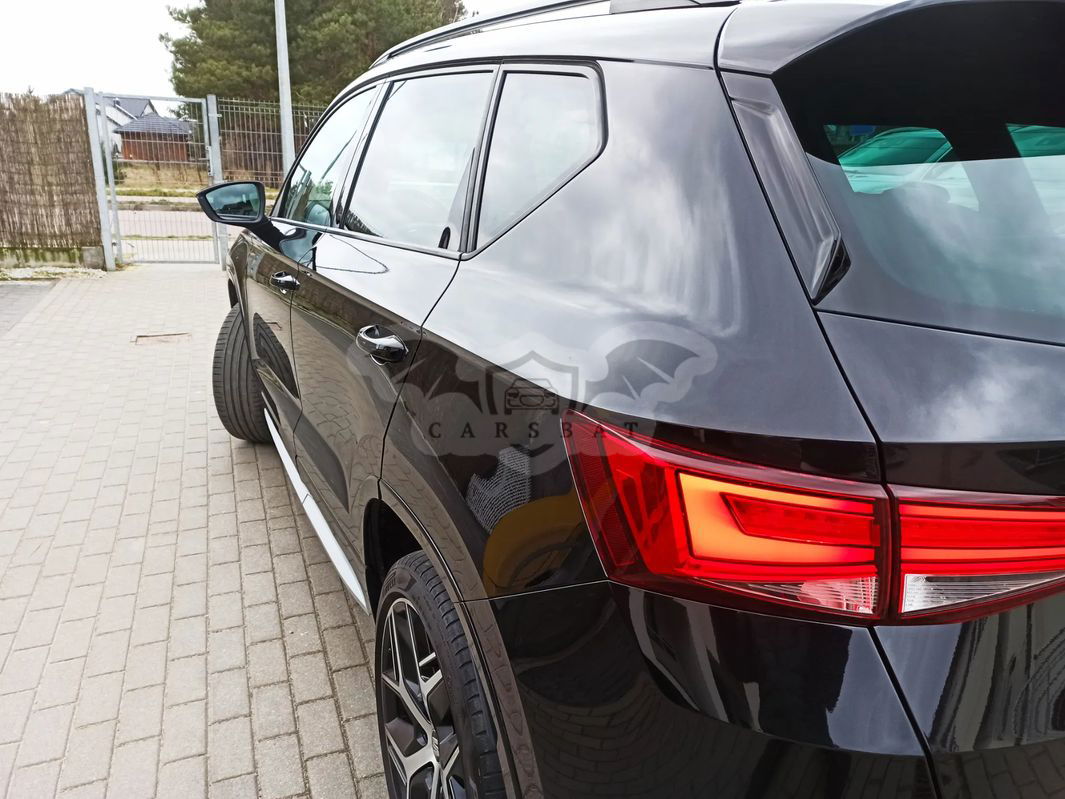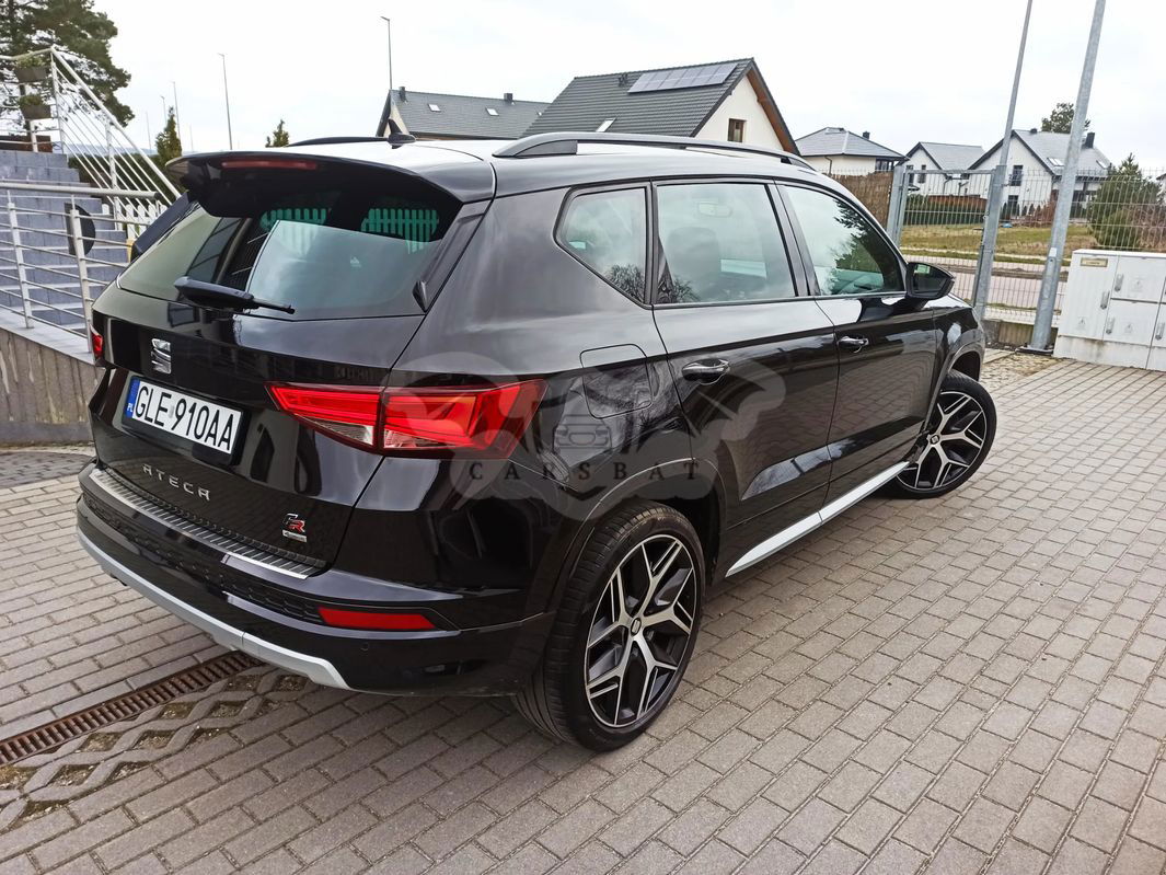 Sprzedam pięknego SEATa Ateca w wersji FR. Silnik 1.4 TSI o mocy 150KM, skrzynia manulna, napęd 4x4. Rocznik pełny 2018. Bogate wyposażenie, m.in skórzana tapicerka, duża navi, kamera cofania, podgrzewanie foteli, lusterek, klimatyzacja dwustrefowa, podgrzewana przednia szyba, android auto i Apple car, czujniki cofania, czujniki deszczu i zmierzchu, oświetlenie wnętrza ambiente, światła w technologii LED, tryby jazdy, systemy bezpieczeństwa, elektryczny fotel kierowcy, front asist, tempomat, czujnik deszczu i zmierzchu i wiele innych. Stan auta oceniam na BDB! Nic mu nie dolega, super jeździ i świetnie wygląda. Auto bezwypadkowe i w originalnym lakierze. Przebieg też oryginalny, posiadam wydruki z przeglądów w ASO oraz raport autoDNA. Wszystko do wglądu na miejscu. Auto w ciągłej eksploatacji. Jestem włacicielem z dowodu rejestracyjnego. Cena do negocjacji. Zapraszam do kontaktu.