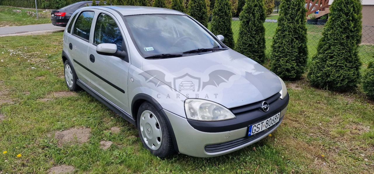 Srebrny Opel Corsa C 1.2 16V 2002 roku | Benzyna