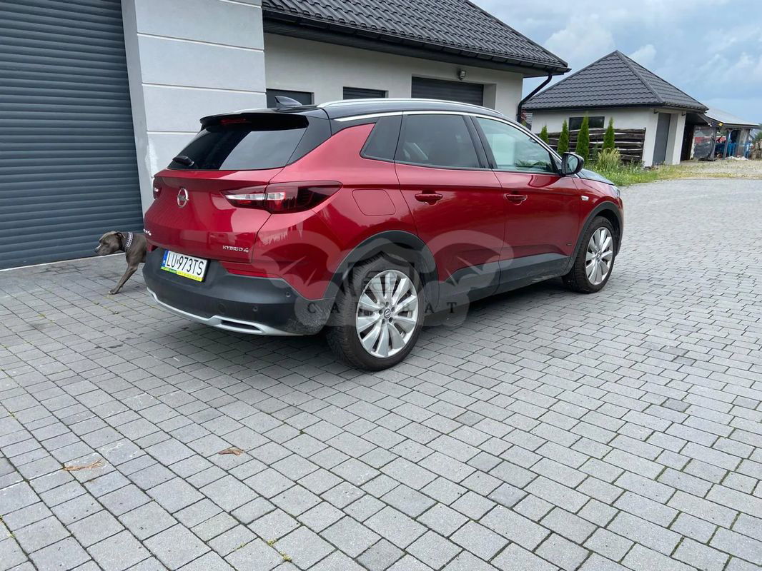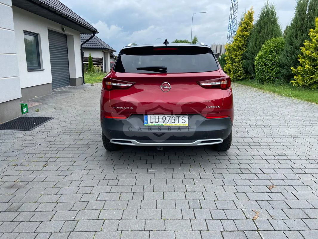 Czerwony Opel Grandland Plug-in-Hybrid4 1.6 DI Start/Stop Ultimate 2021 roku | Hybrydowy