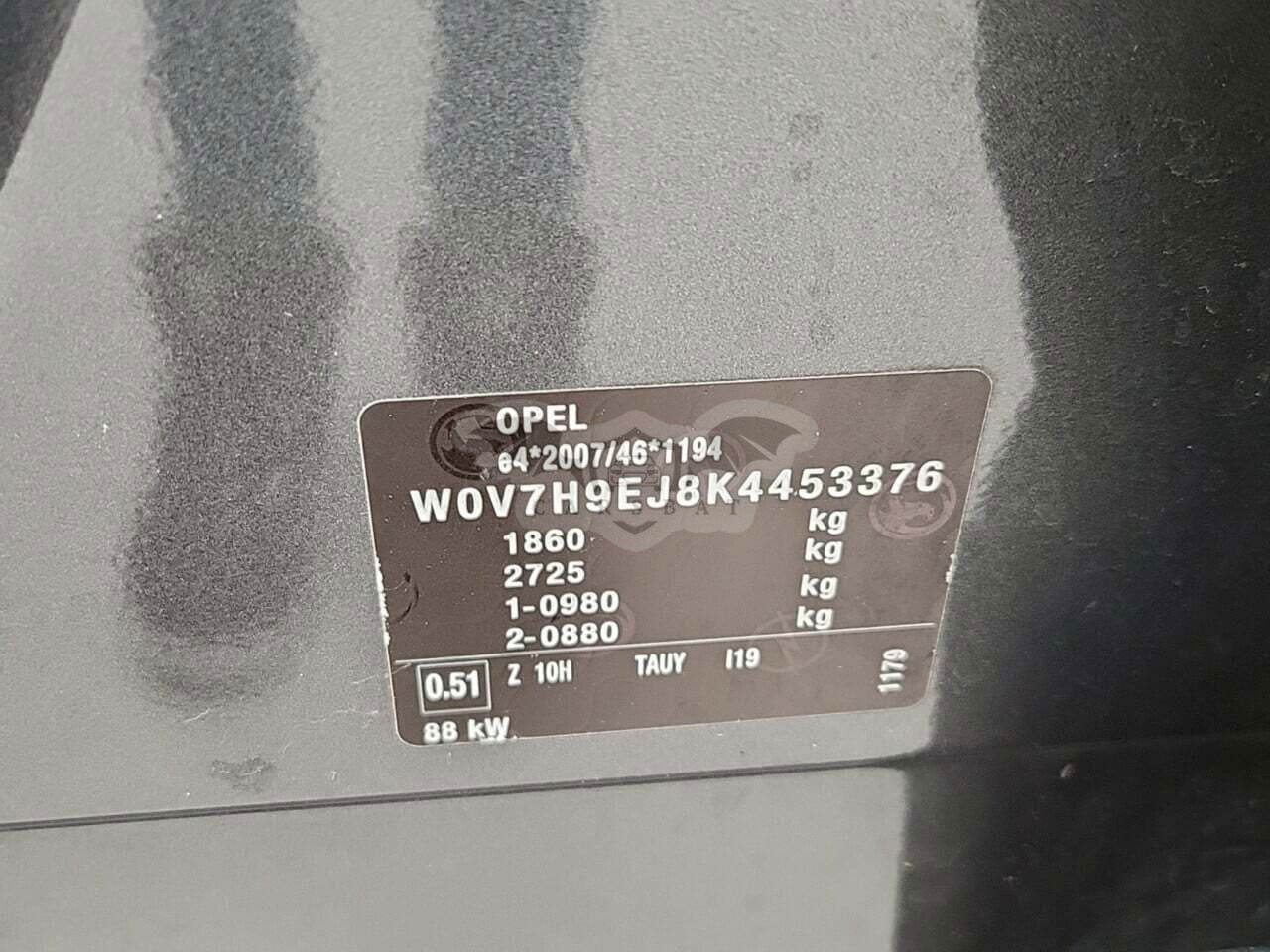 • VIN: W0V7H9EJ8K4453376