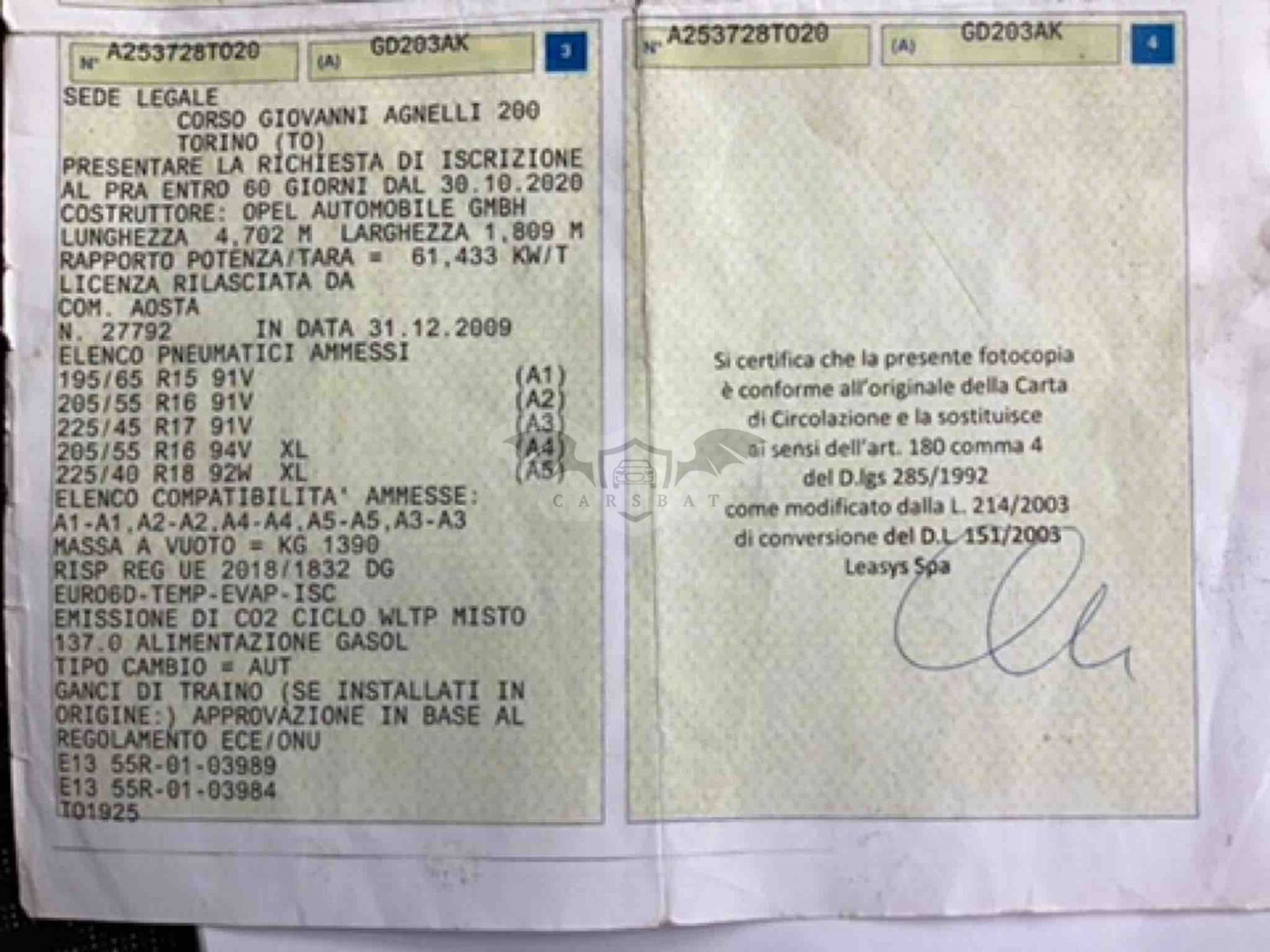 • VIN: W0VBE8EV9L8009224