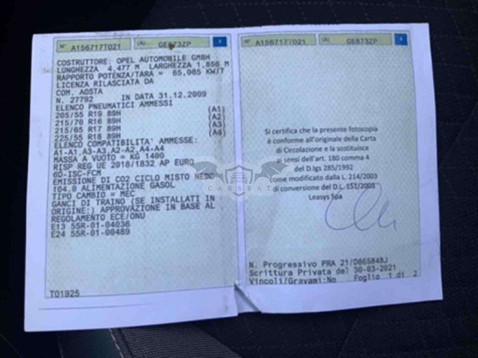 • VIN: W0VZCYHZ7M6817197
