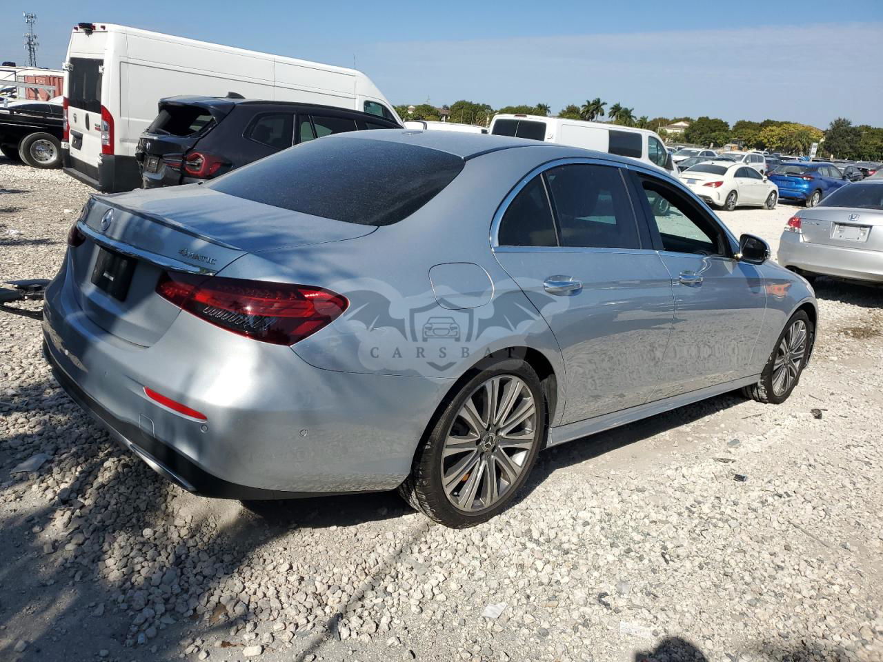 Srebrny Mercedes-Benz E 450 4MATIC 3.0L 6 2022 roku | Benzyna