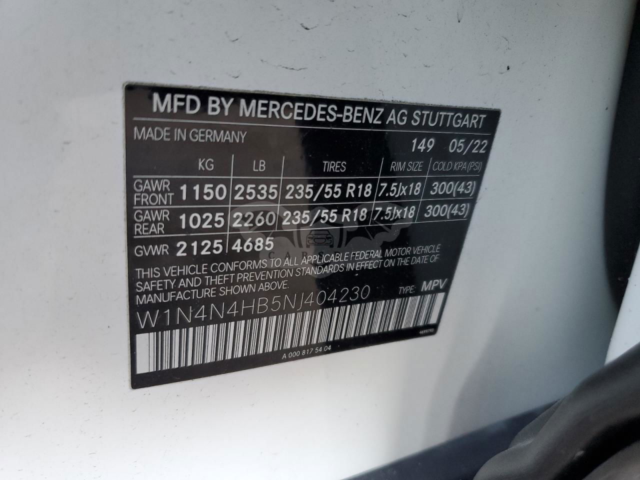 • VIN: W1N4N4HB5NJ404230