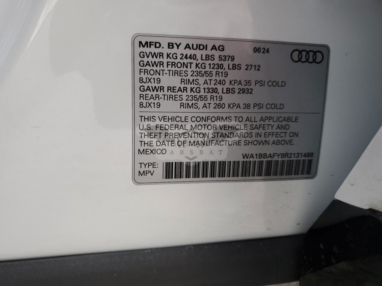 • VIN: WA1BBAFY8R2131498