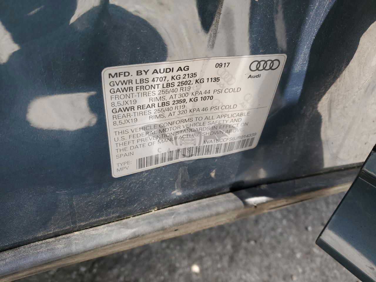 • VIN: WA1BCCFS6JR014339