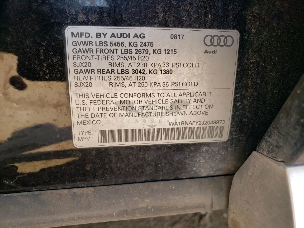 • VIN: WA1BNAFY2J2049973