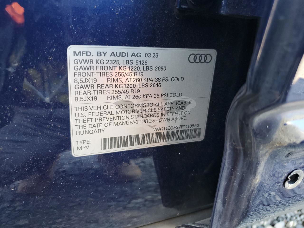 • VIN: WA1DECF37P1110550