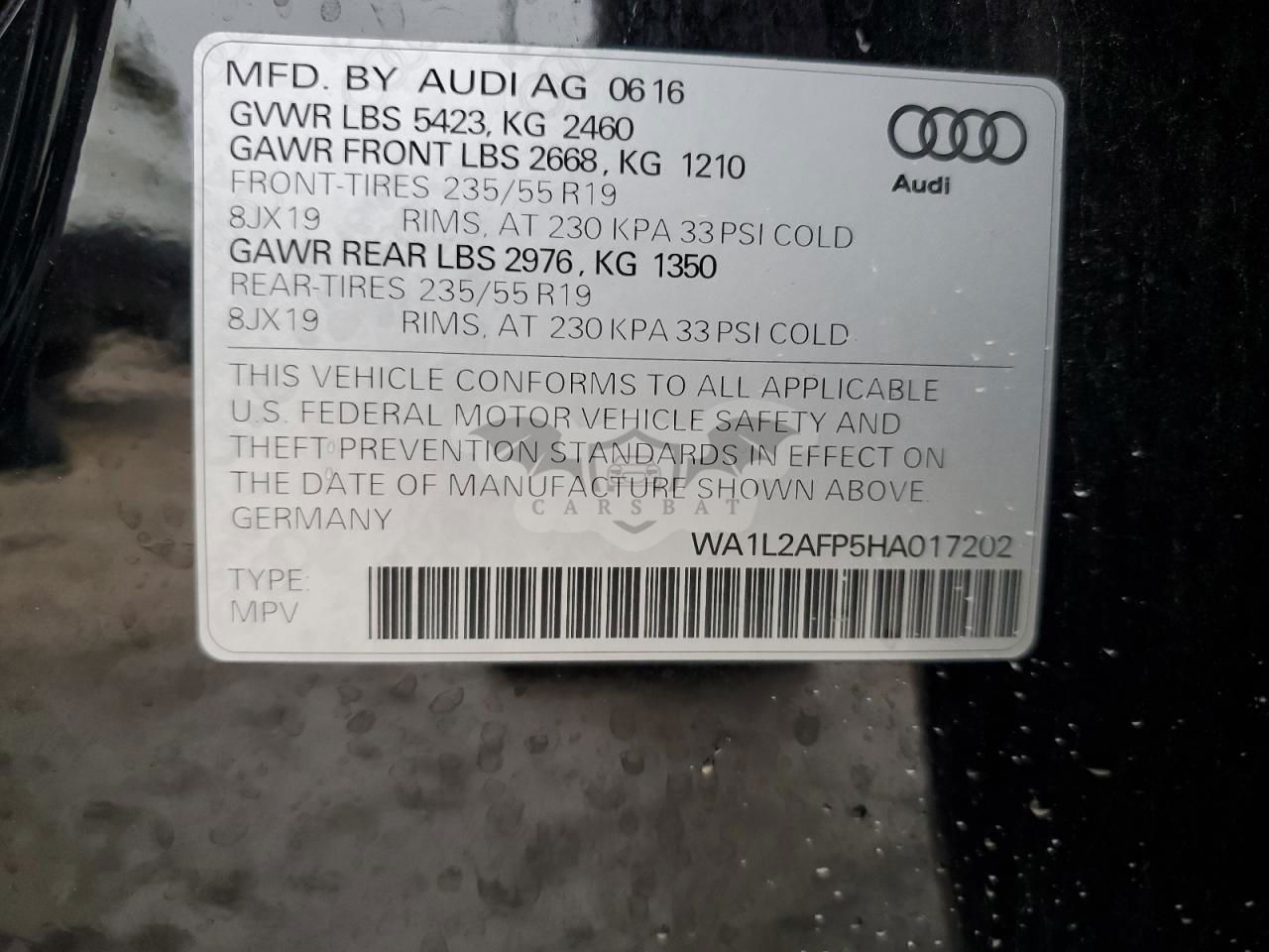 • VIN: WA1L2AFP5HA017202