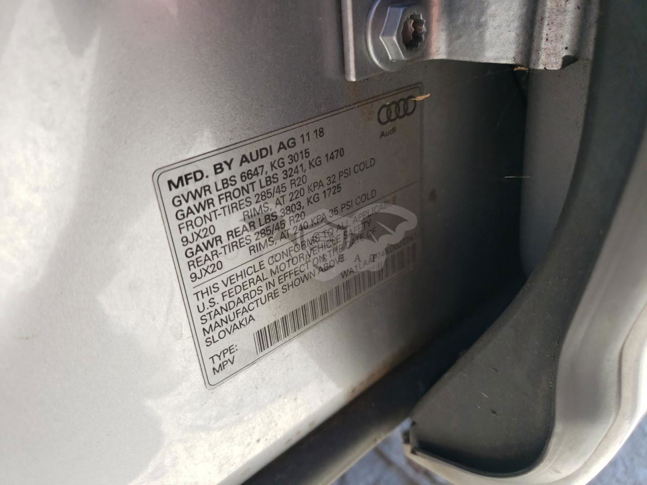 • VIN: WA1LAAF74KD022741