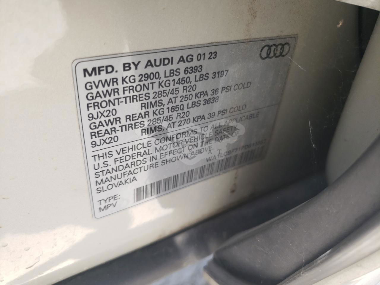 • VIN: WA1LCBF71PD011882
